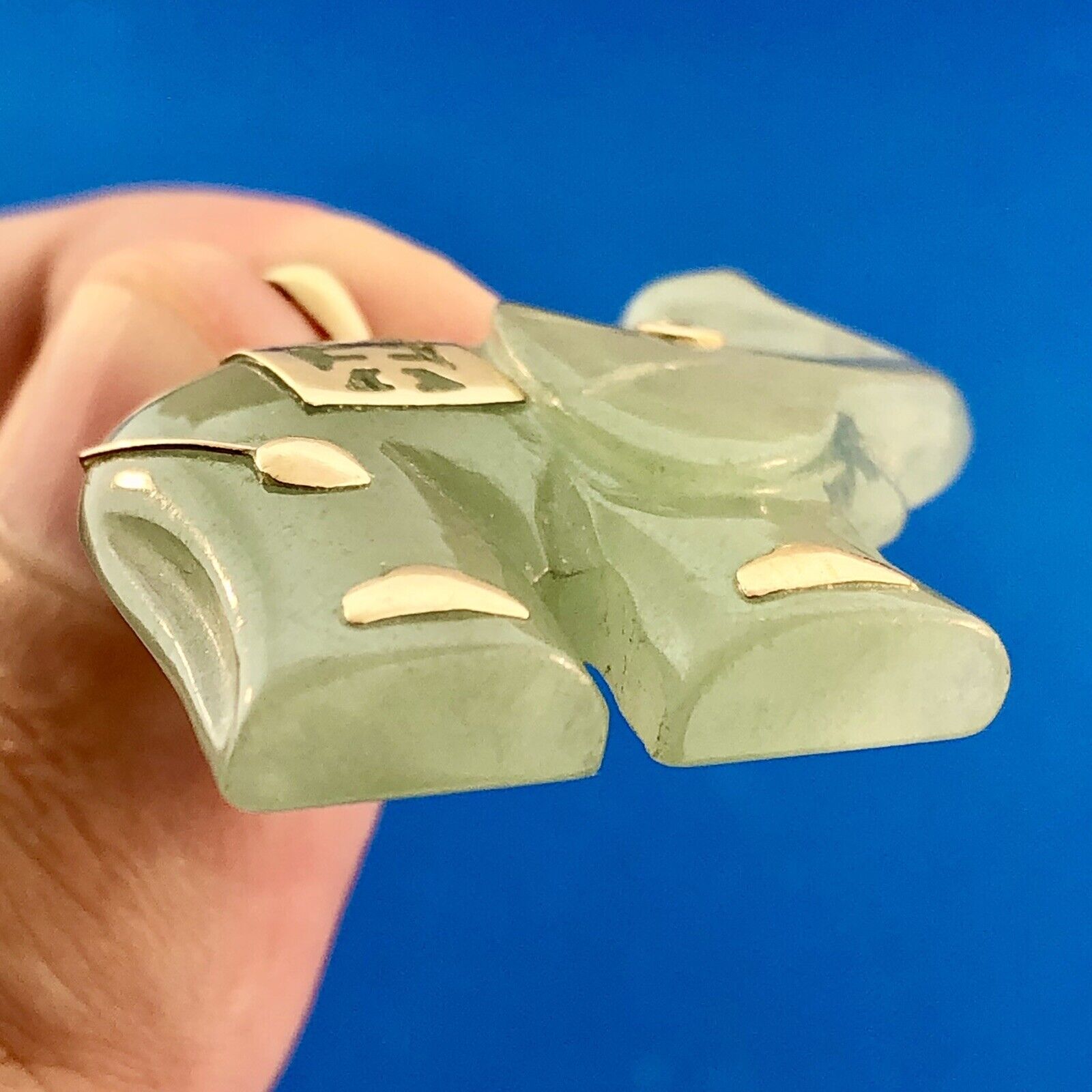 - Vintage 14K Yellow Gold Carved Jade Jadeite Ruby Eye Elephant Good Luck Pendant