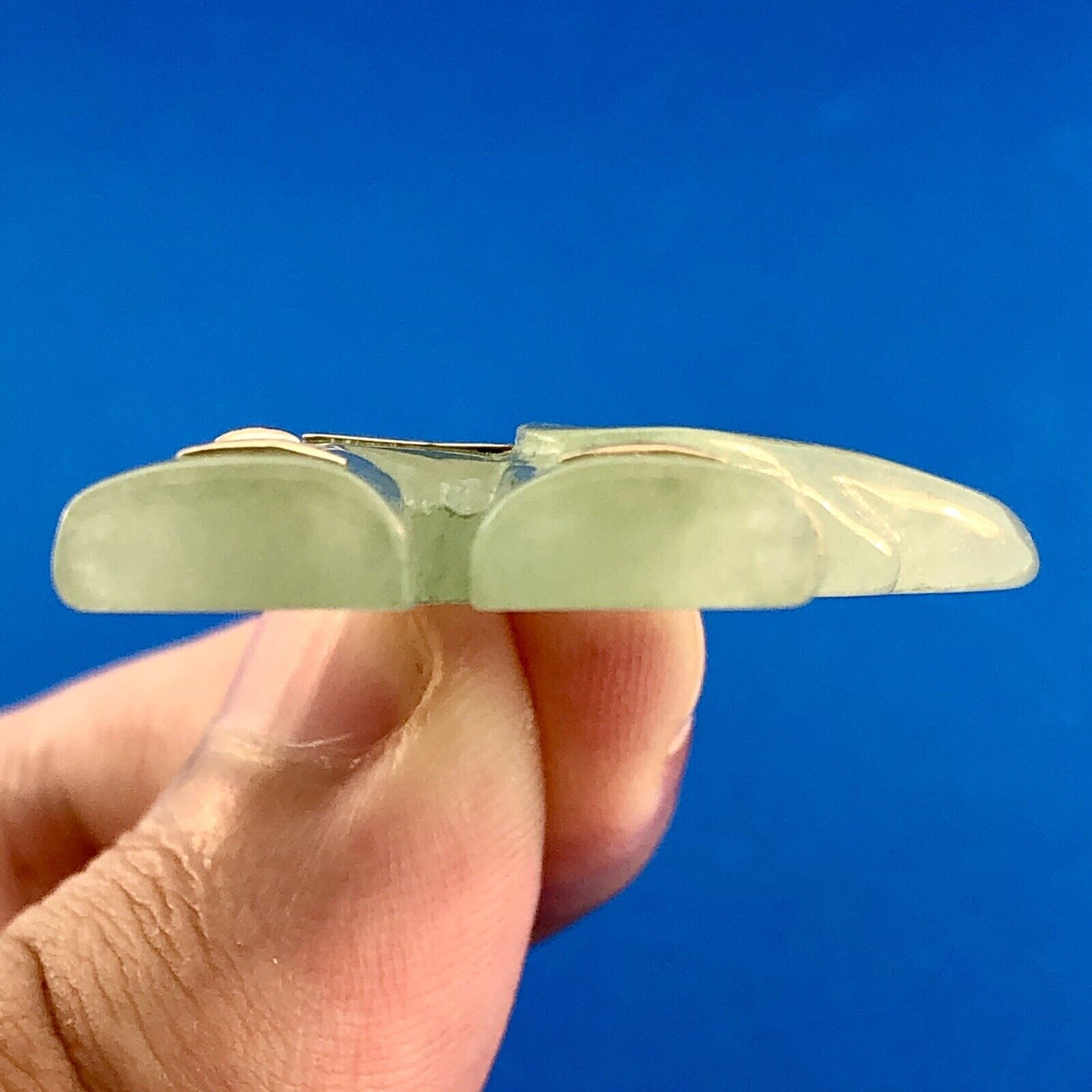 Vintage 14K Yellow Gold Carved Jade Jadeite Ruby Eye Elephant Good Luck Pendant