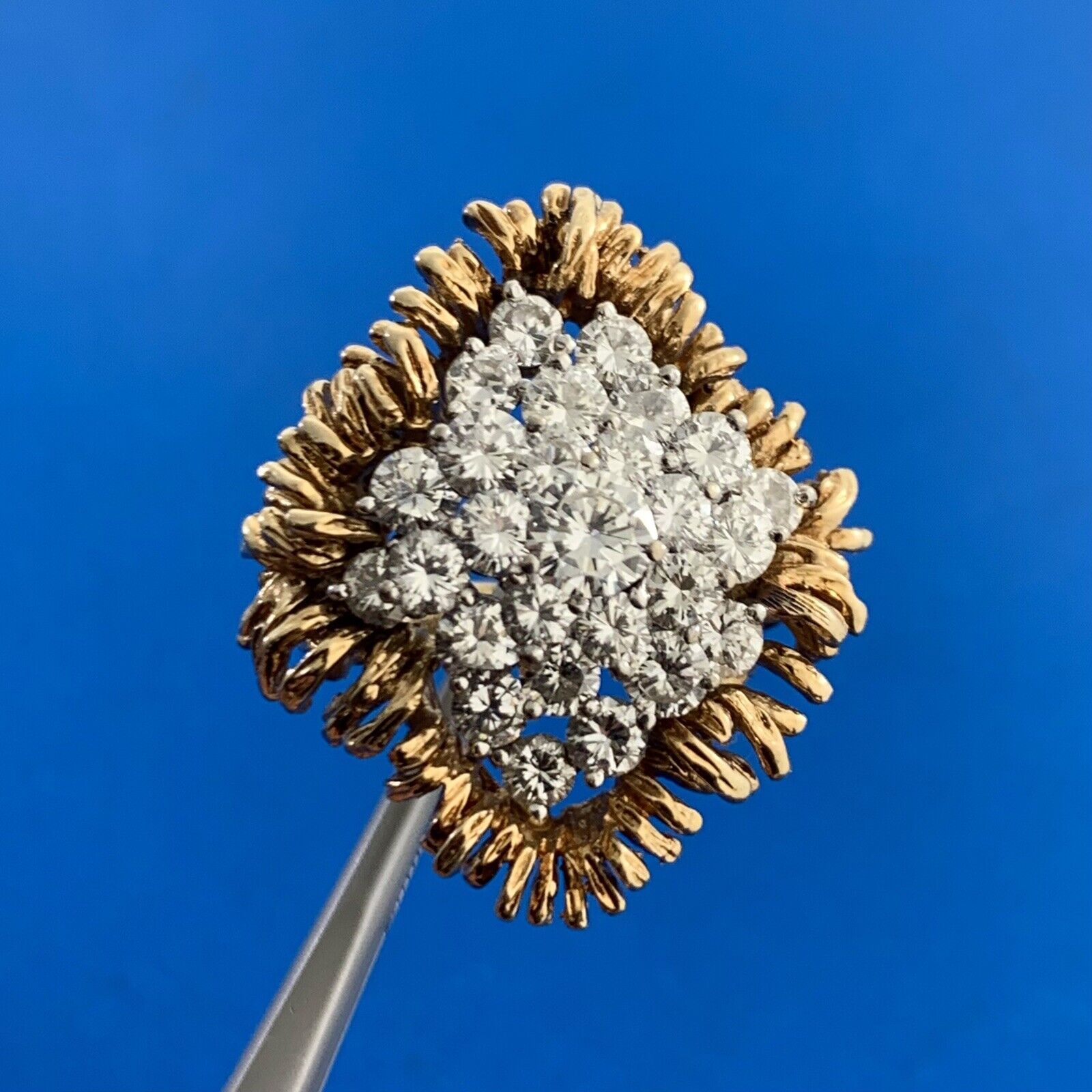 - Vintage 14K Yellow Gold Diamond Waterfall Cluster Artisan Statement Cocktail Ring