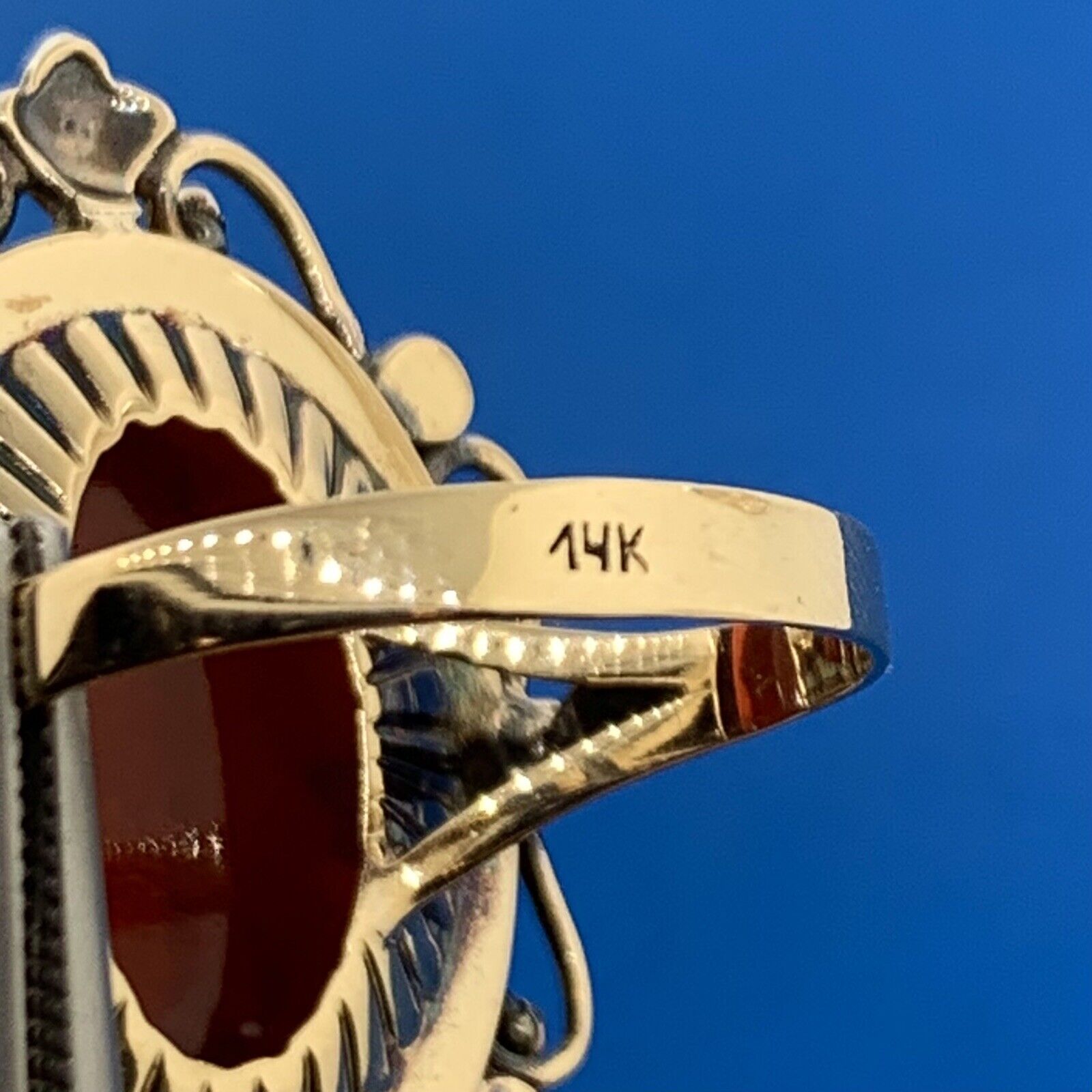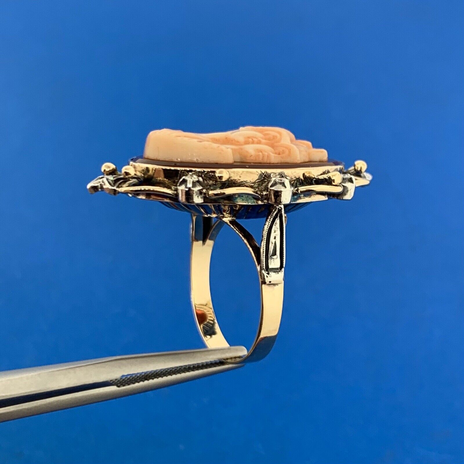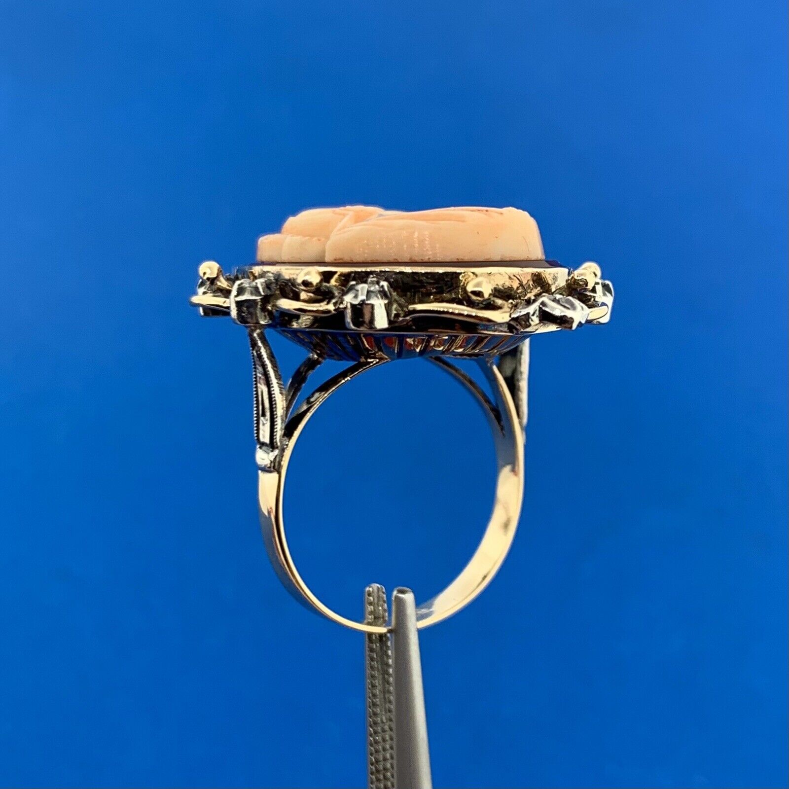 - Vintage 14K Yellow Gold Double Carved Soldier Cameo Diamond Accent Etruscan Ring