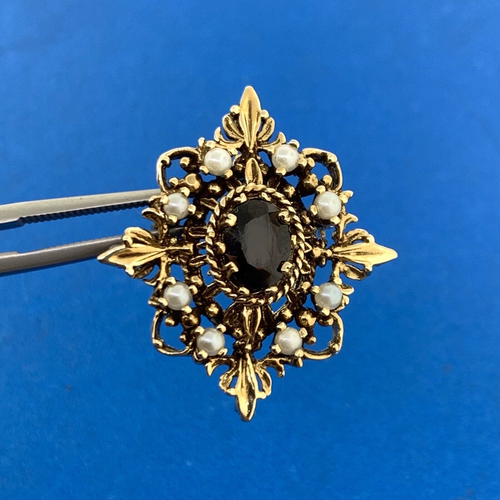 - Vintage 14K Yellow Gold Oval Garnet Pearl Accented Statement Pendant