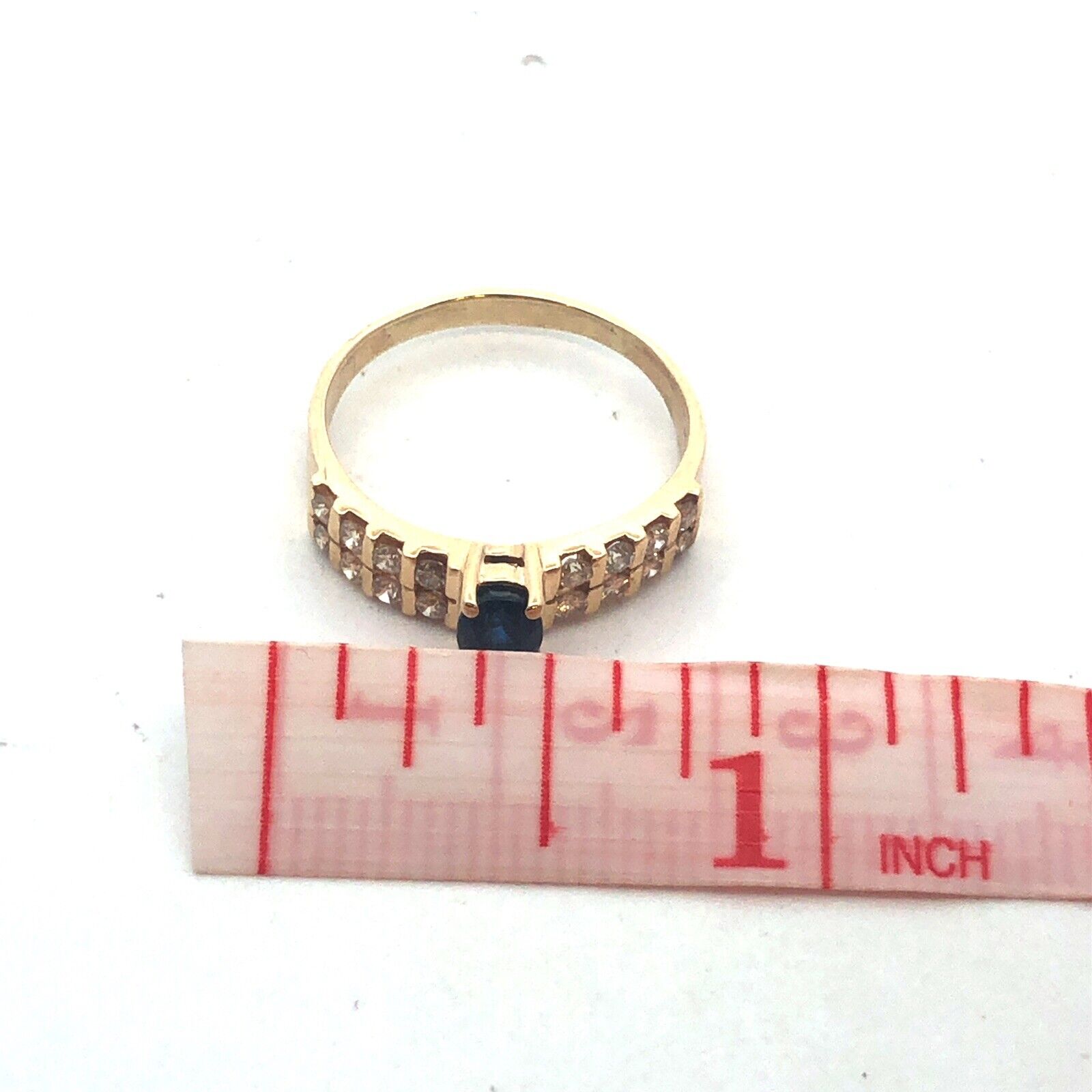 Vintage 14K Yellow Gold Oval Sapphire Diamond Accent Anniversary Ring