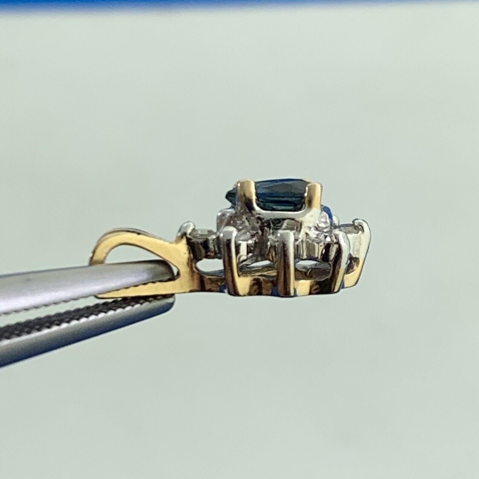 Vintage 14K Yellow Gold Pear Cut Blue Sapphire Diamond Halo Teardrop Pendant
