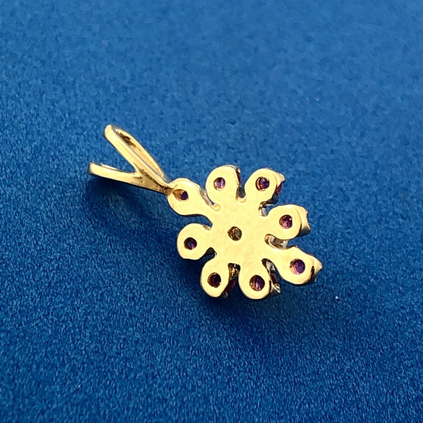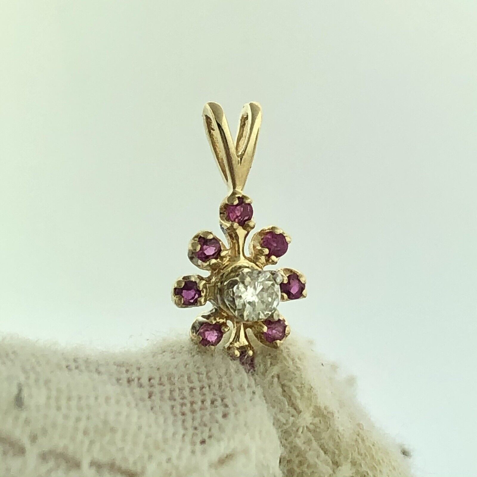 Vintage 14K Yellow Gold Ruby Diamond Floral Starburst July Anniversary Pendant