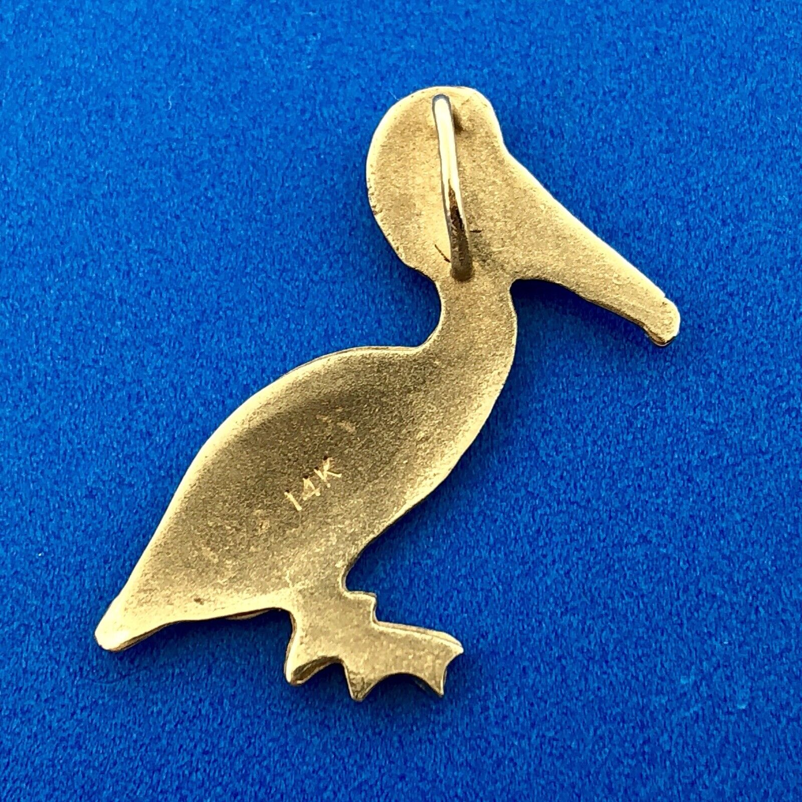 - Vintage 14K Yellow Gold Textured Bird Pelican Louisiana State Bird Pendant