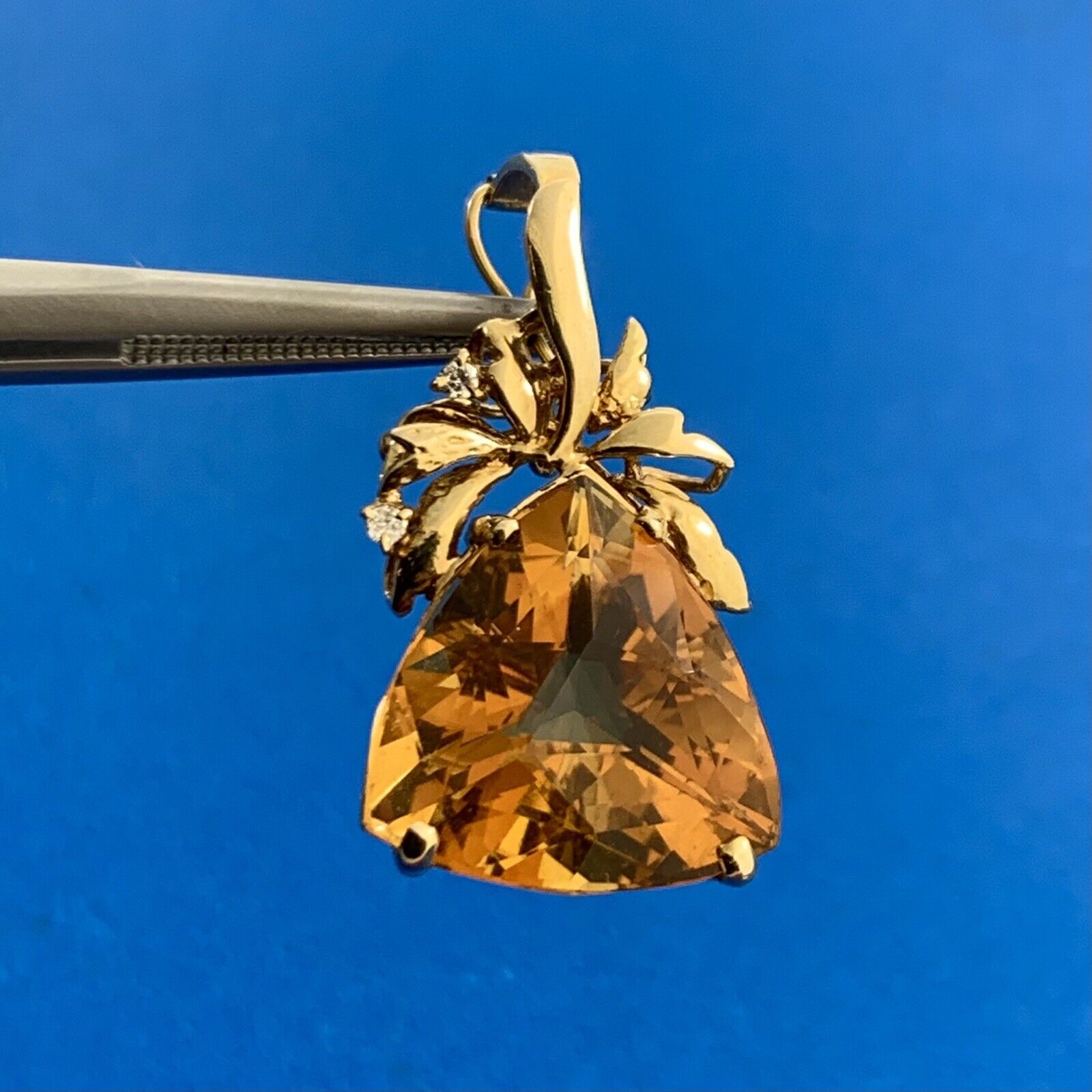 Vintage 14K Yellow Gold Trillion Citrine Diamond Accented Enhancer Pendant