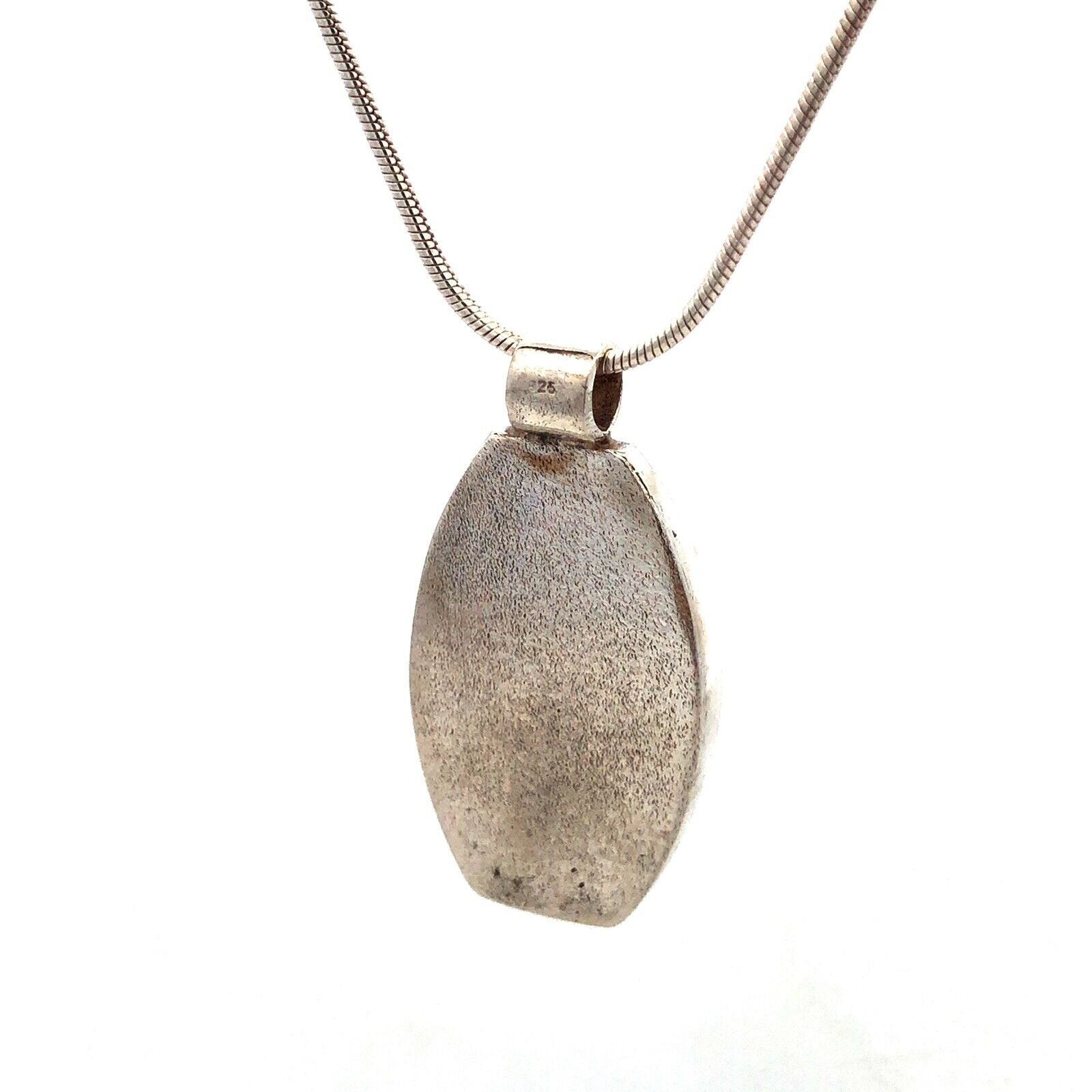 Vintage 925 Sterling Silver Amber Orange Agate Inlay Oval Pendant Necklace