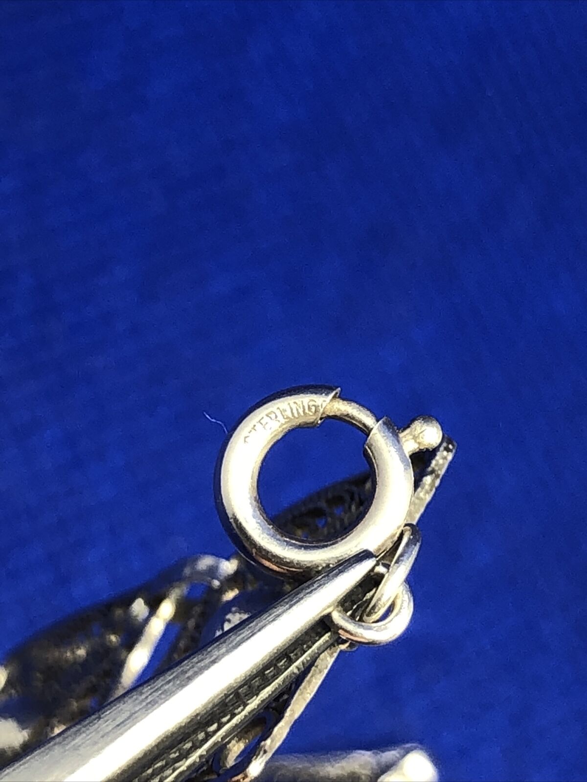 Vintage 925 Sterling Silver Beaded Filigree Delicate Square Panel Bracelet