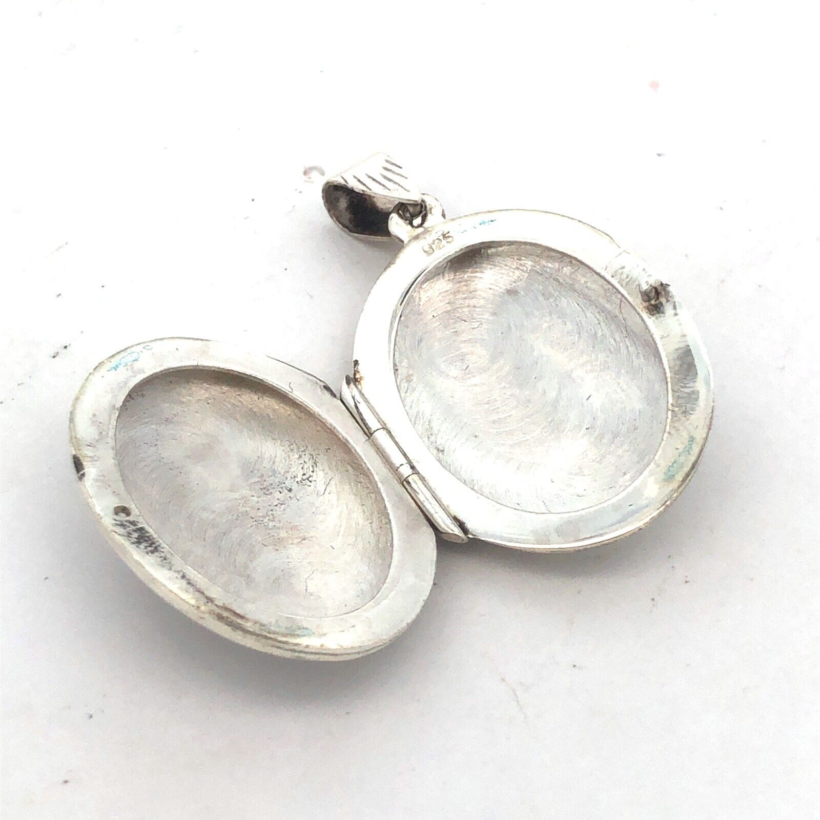 Vintage 925 Sterling Silver Etched Vine Filigree Oval Picture Locket Pendant
