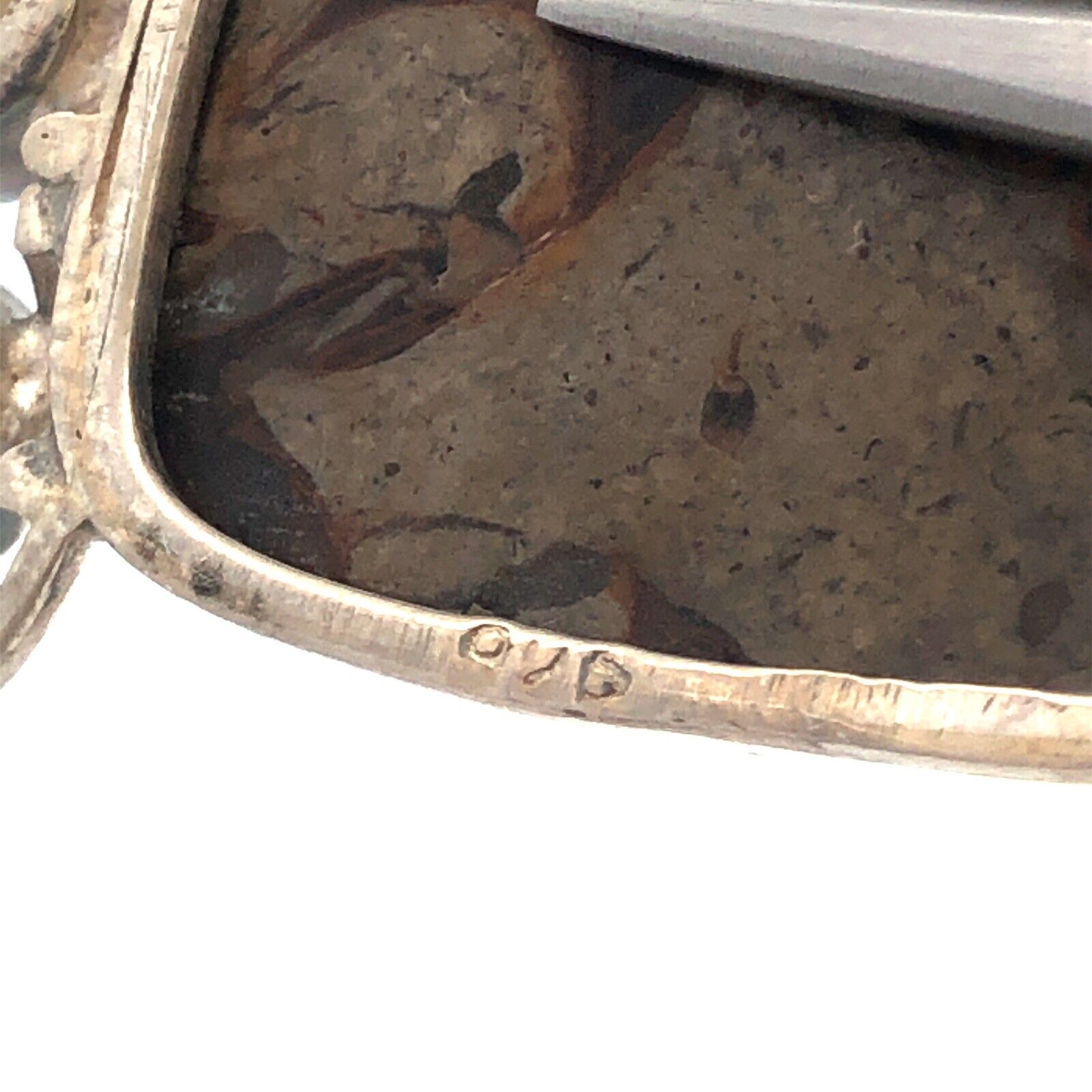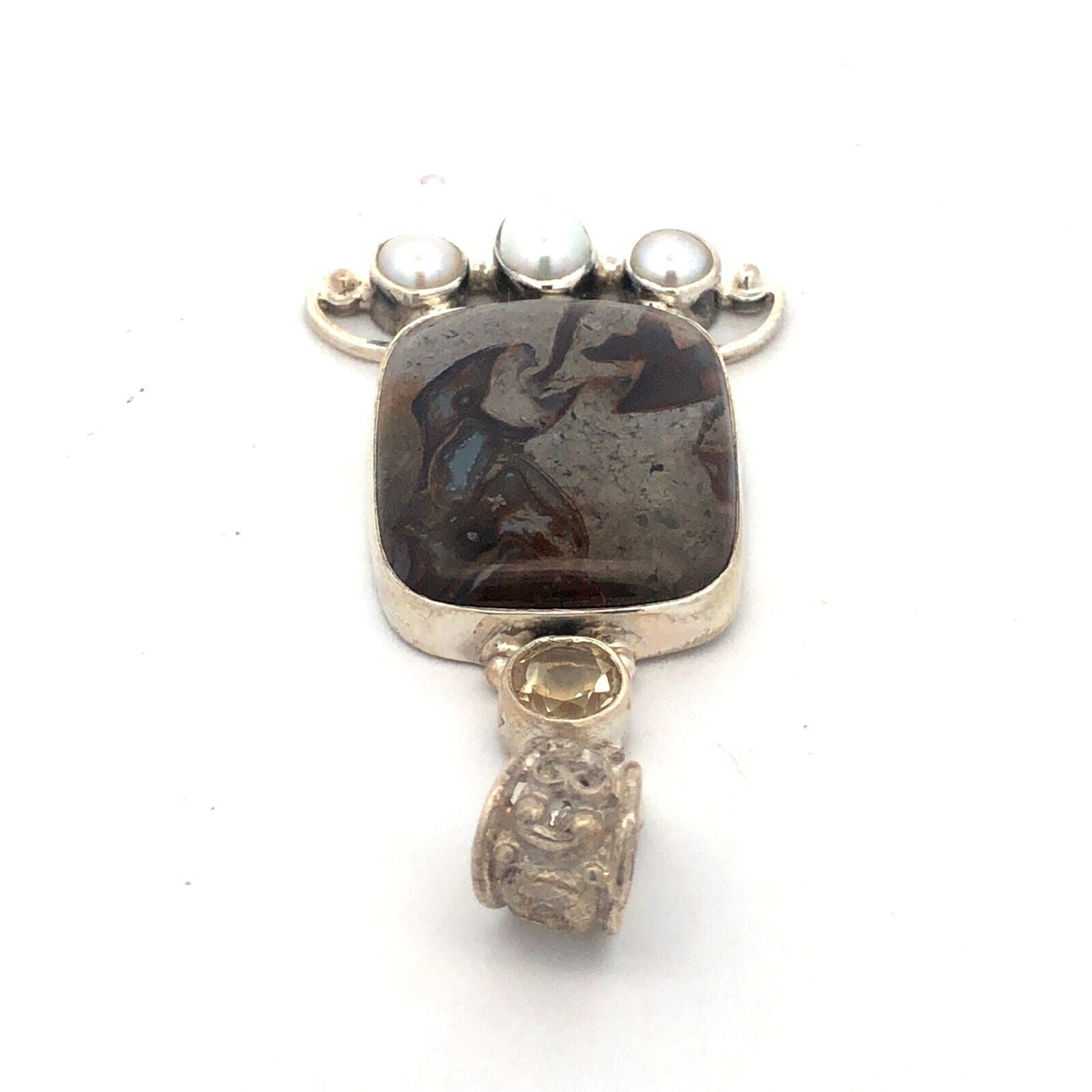 Vintage 925 Sterling Silver Grey Calsi Pearl White Amethyst Scroll Pendant