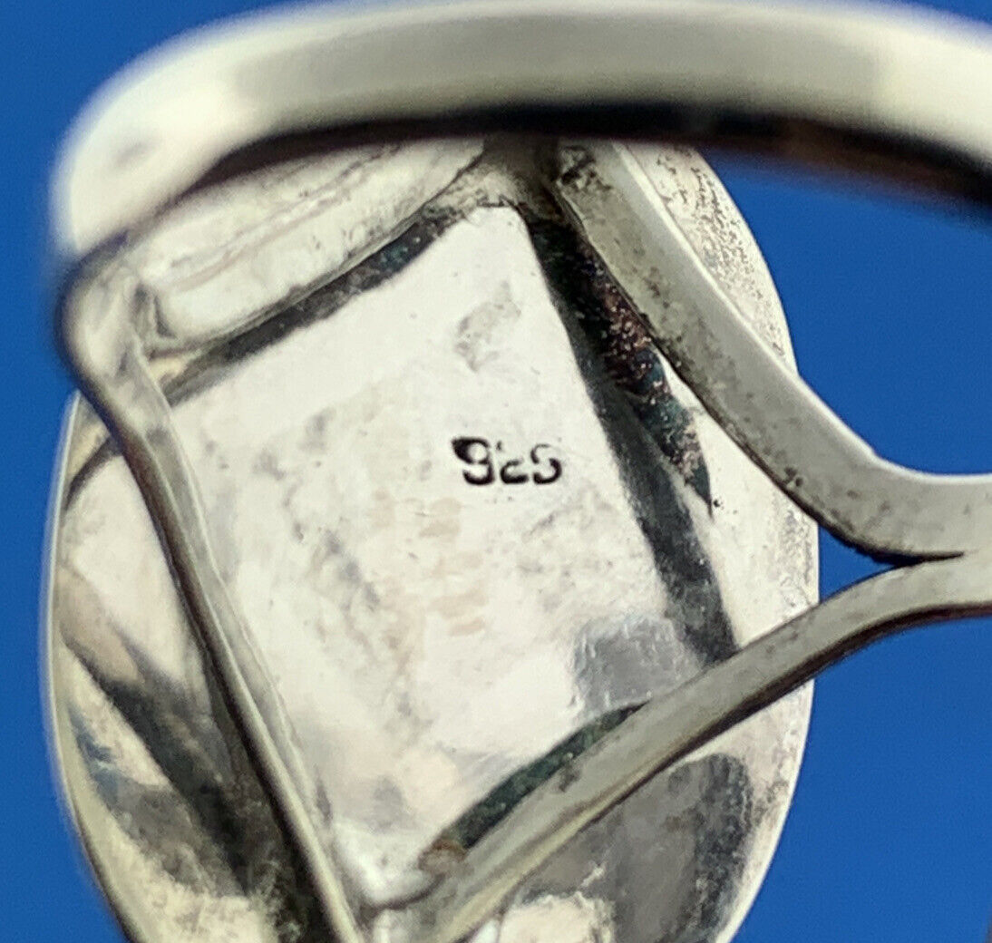 - Vintage 925 Sterling Silver Larimar Pectolite Oval Cabochon Cocktail Ring