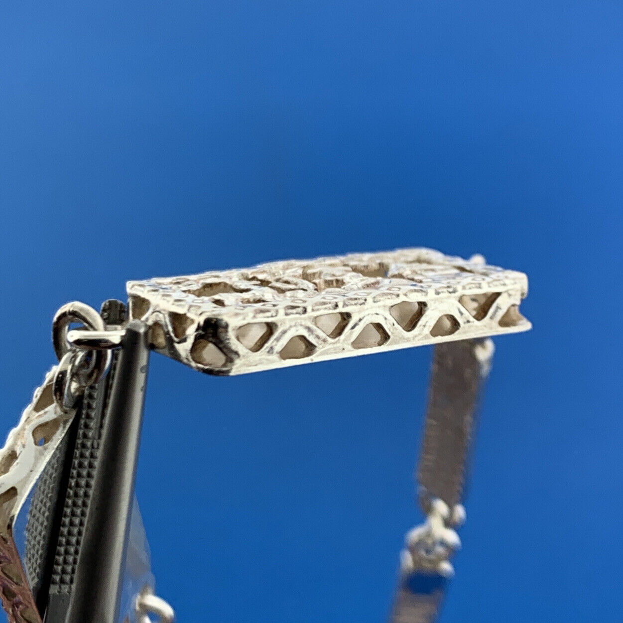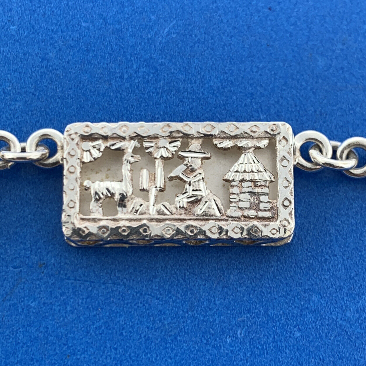 Vintage 925 Sterling Silver Malachite Aztec Incan Village Scene Panel Necklace