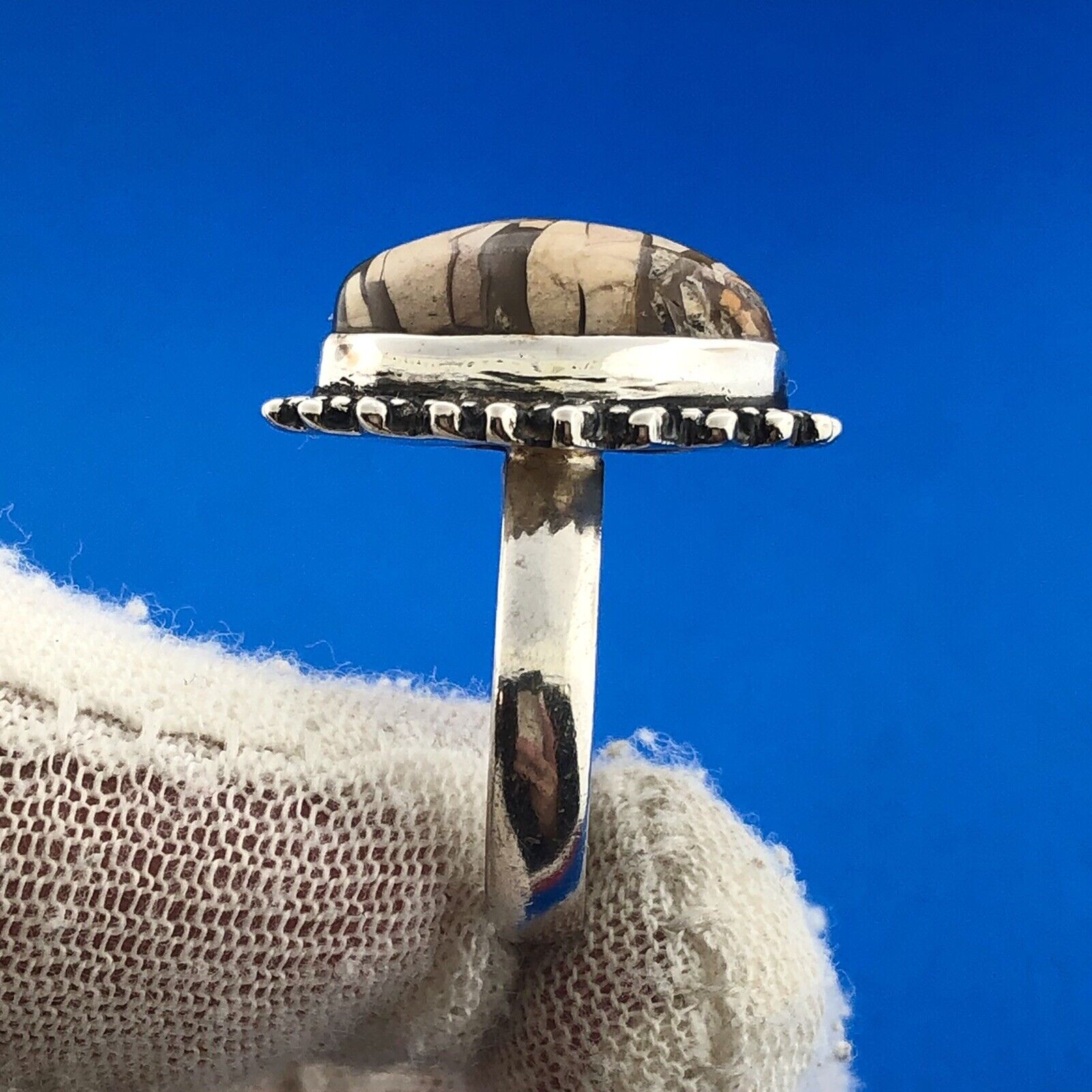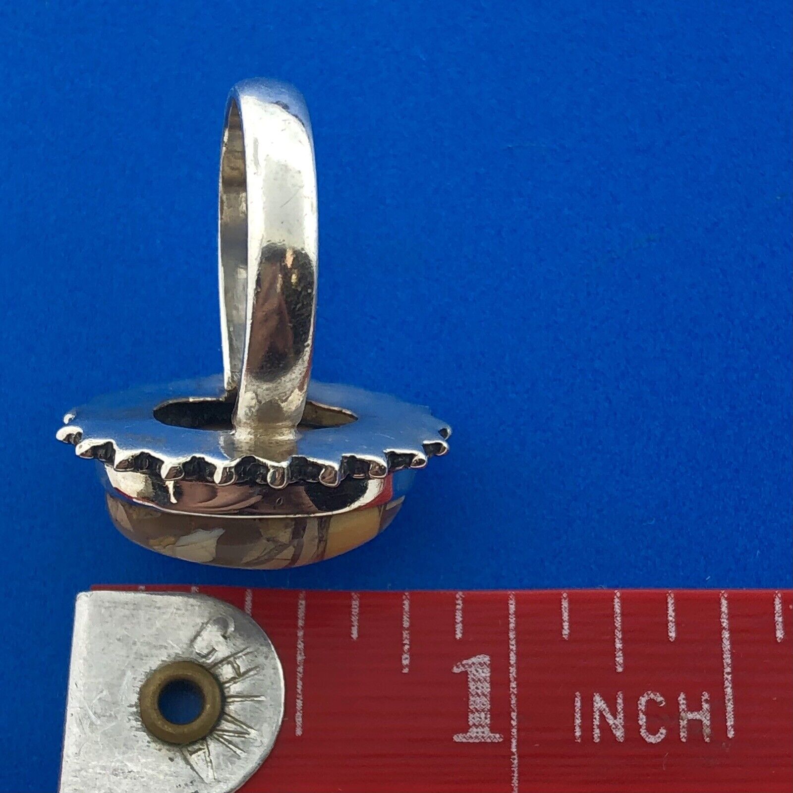 Vintage 925 Sterling Silver Oval Enamel Mosaic Jasper Inlay Statement Ring