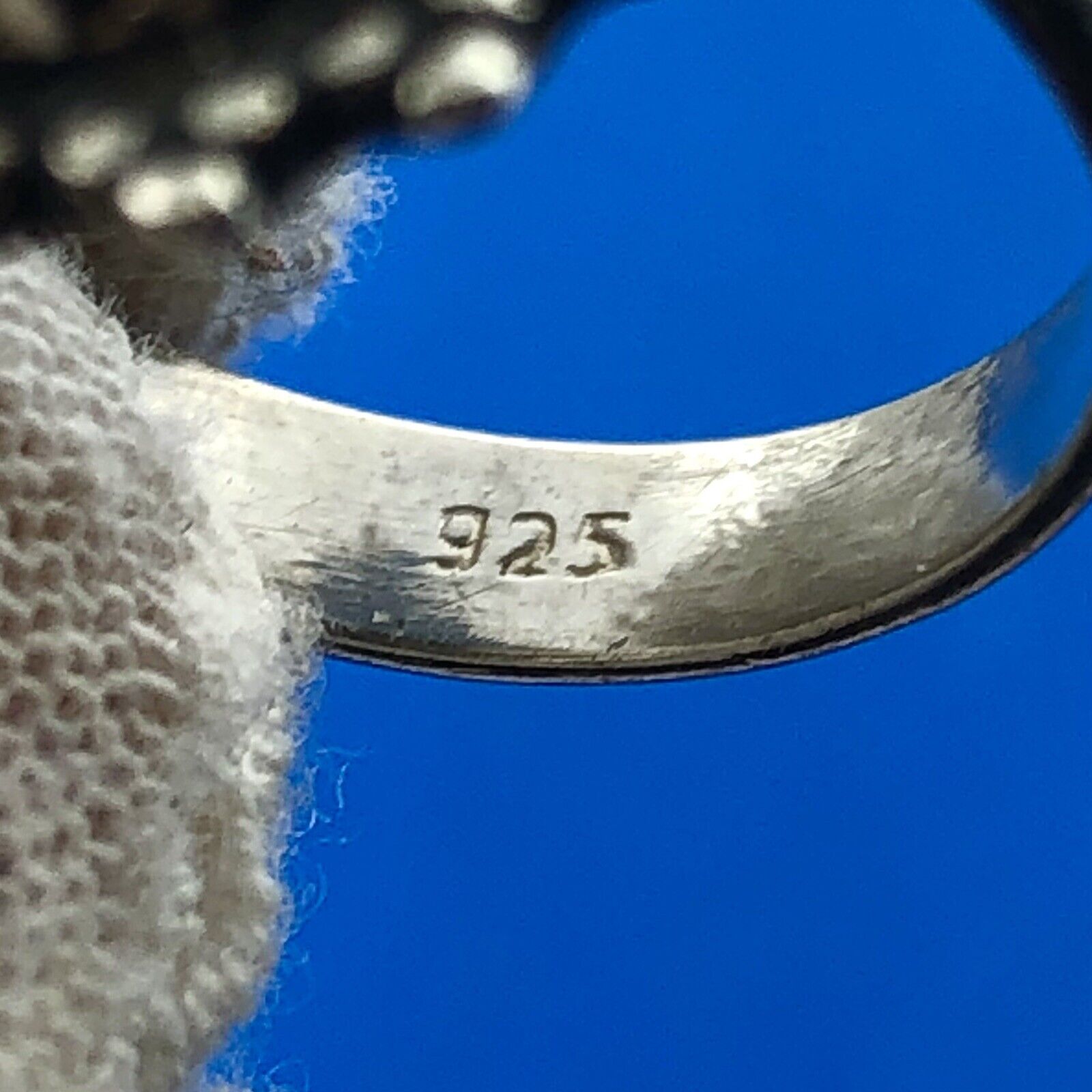- Vintage 925 Sterling Silver Oval Enamel Mosaic Jasper Inlay Statement Ring