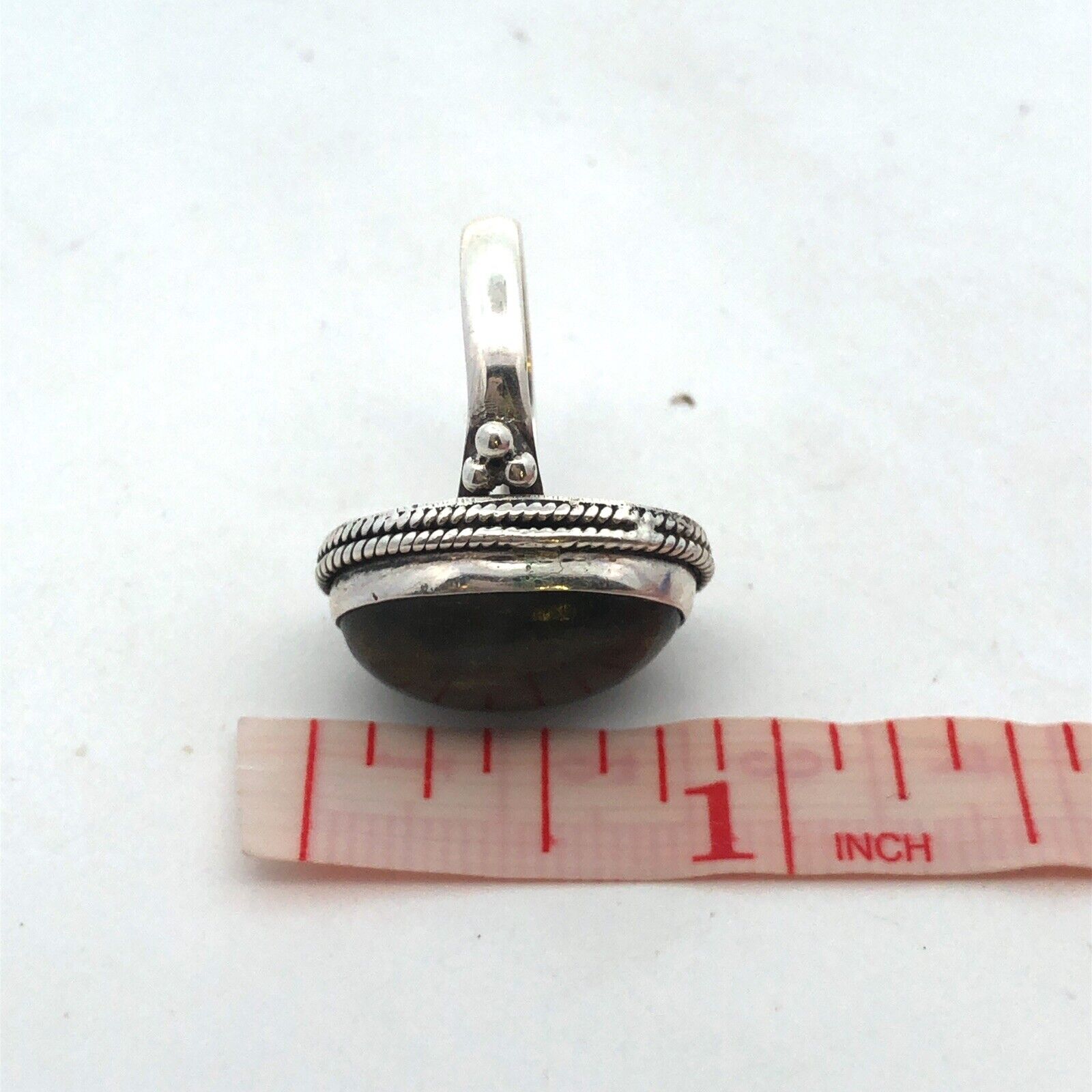 Vintage 925 Sterling Silver Oval Green Labradorite Cabochon Statement Ring