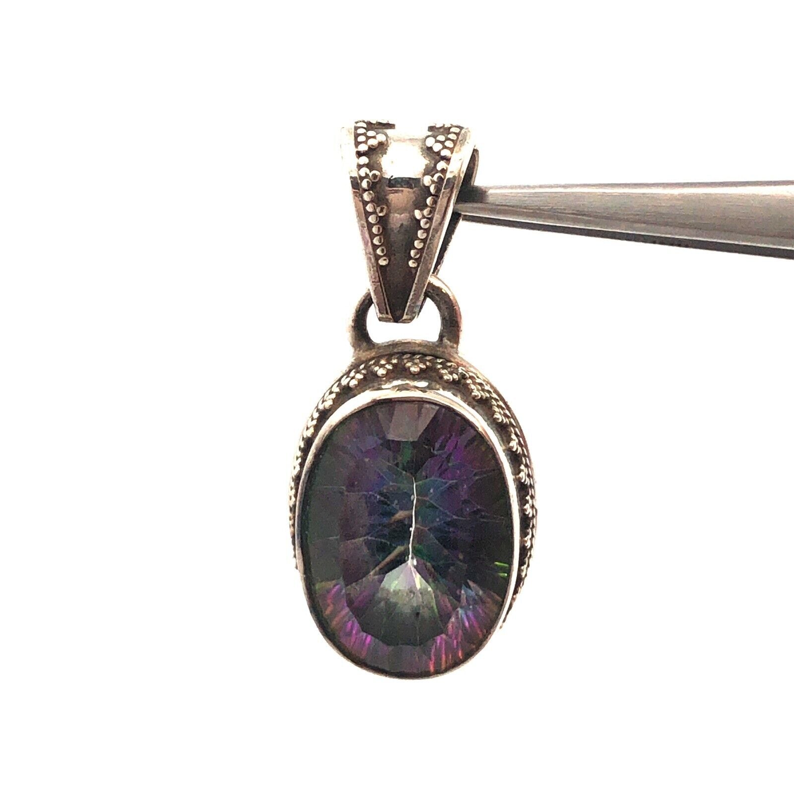 Vintage 925 Sterling Silver Oval Mystic Topaz Statement Pendant