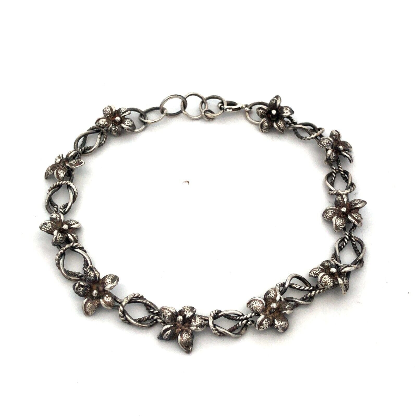 Vintage 925 Sterling Silver Plumeria Flower Floral Hawaiian Tropical Bracelet