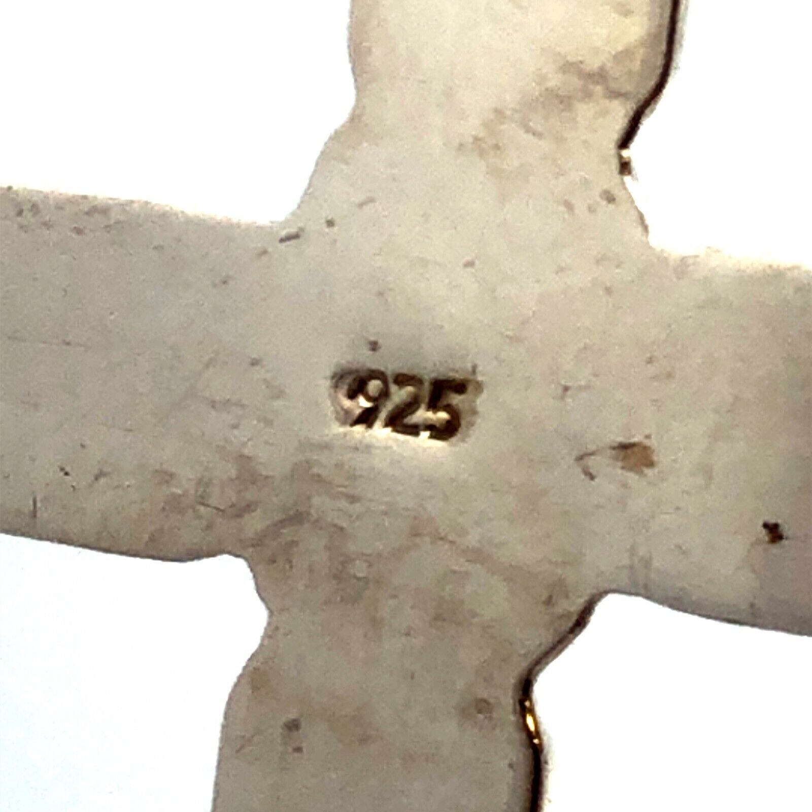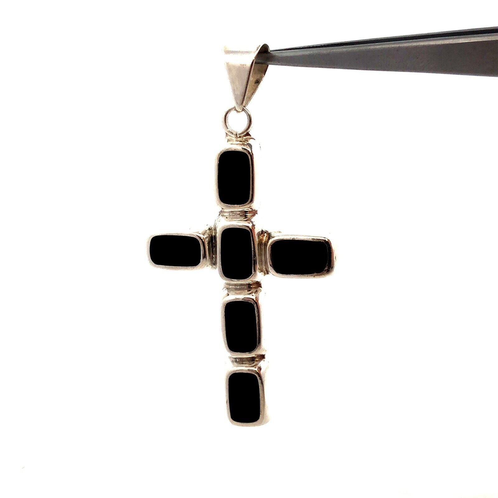 Vintage 925 Sterling Silver Rectangle Black Onyx Bezel Cross Pendant