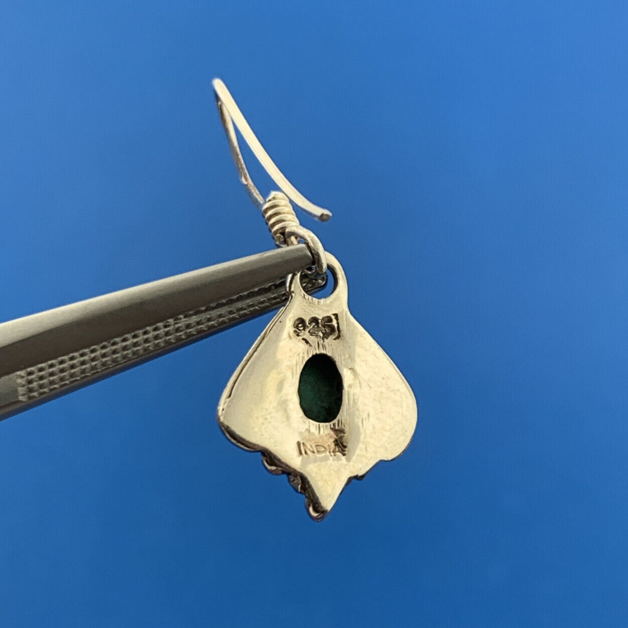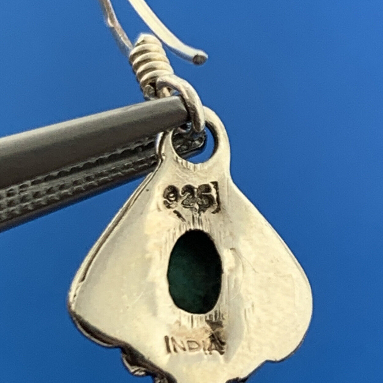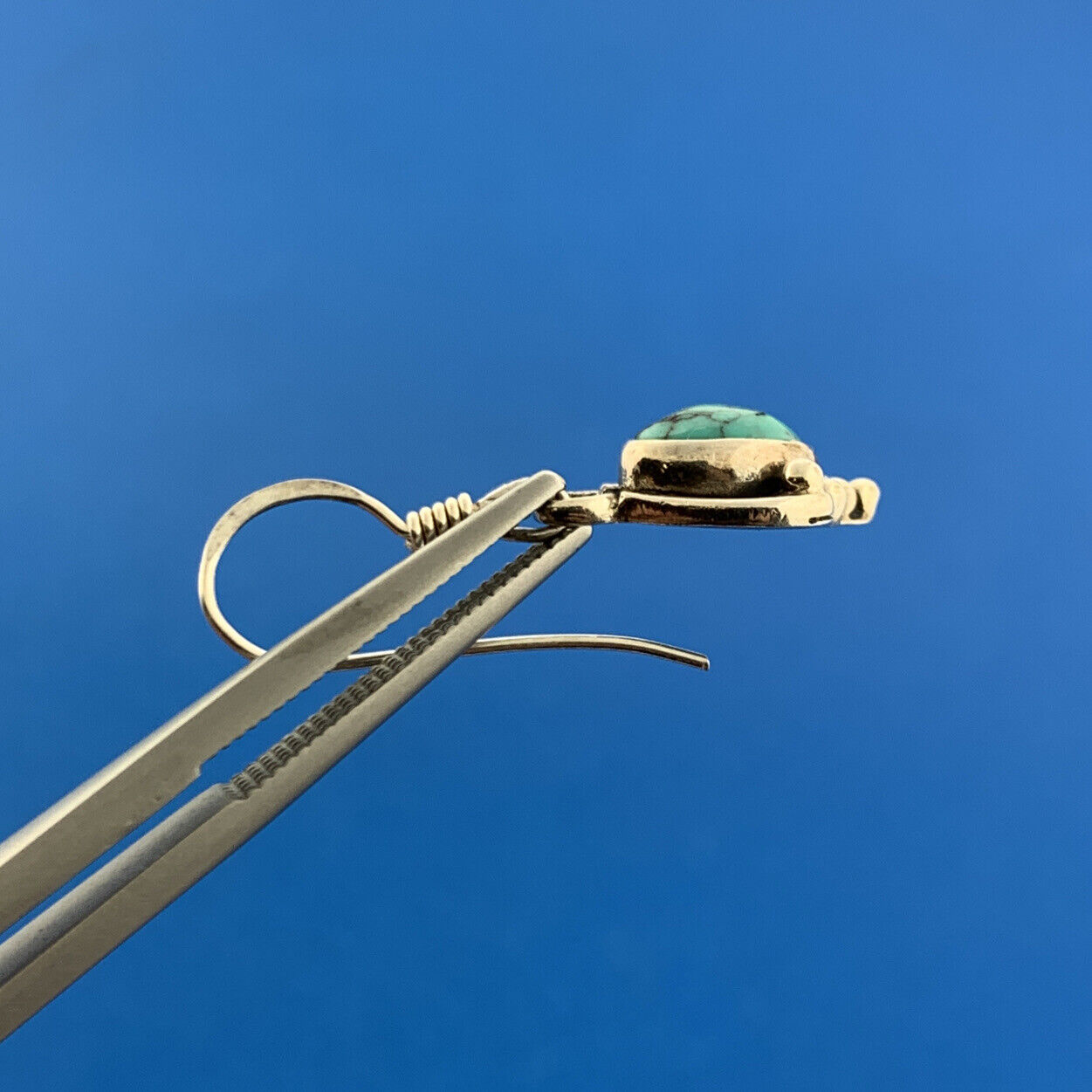 - Vintage 925 Sterling Silver Turquoise Cabochon Bead Work Drop Dangle Earrings