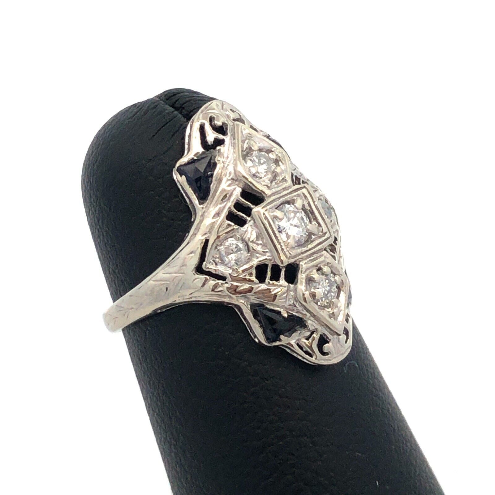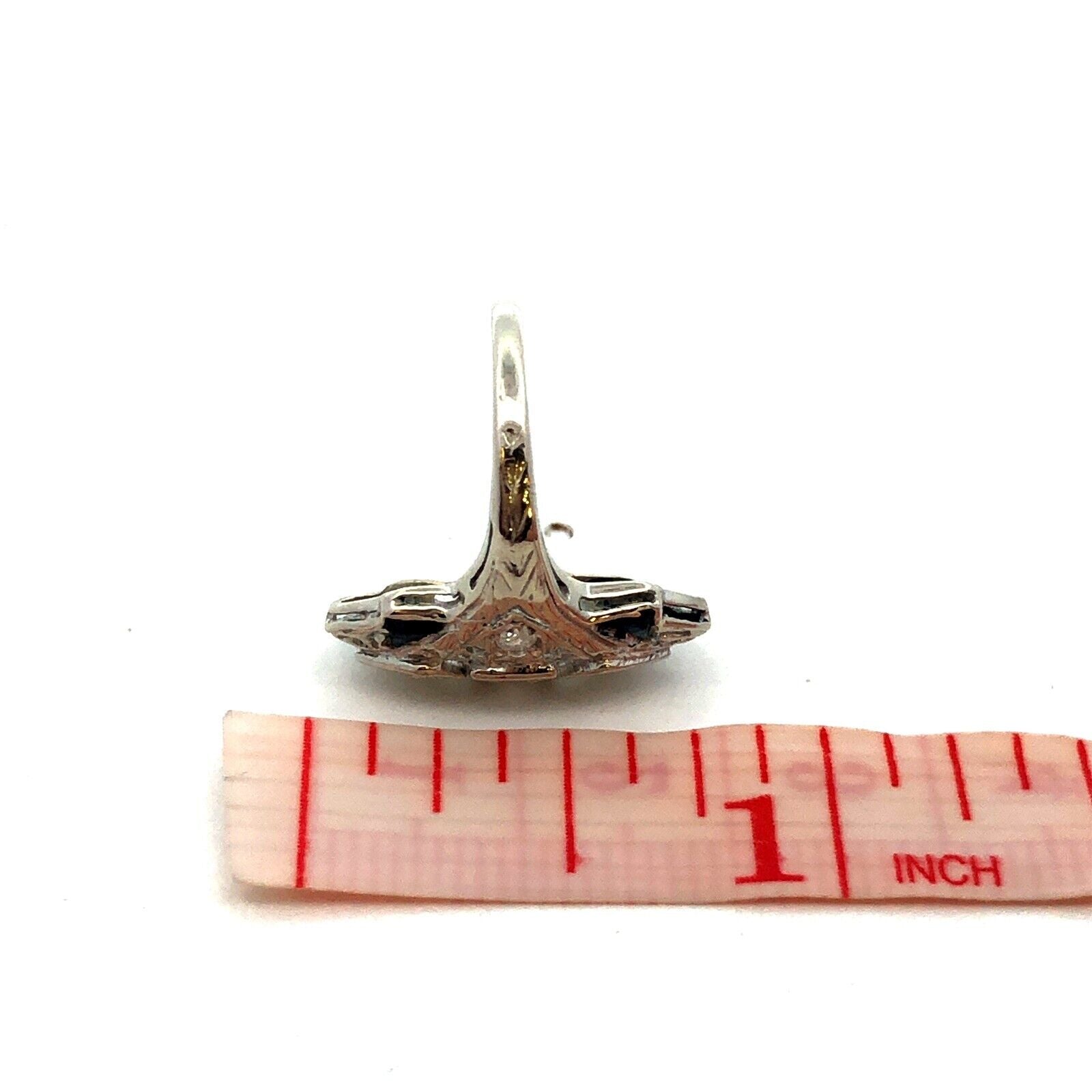 Vintage Art Deco 14K White Gold Diamond Sapphire Filigree Oval Statement Ring