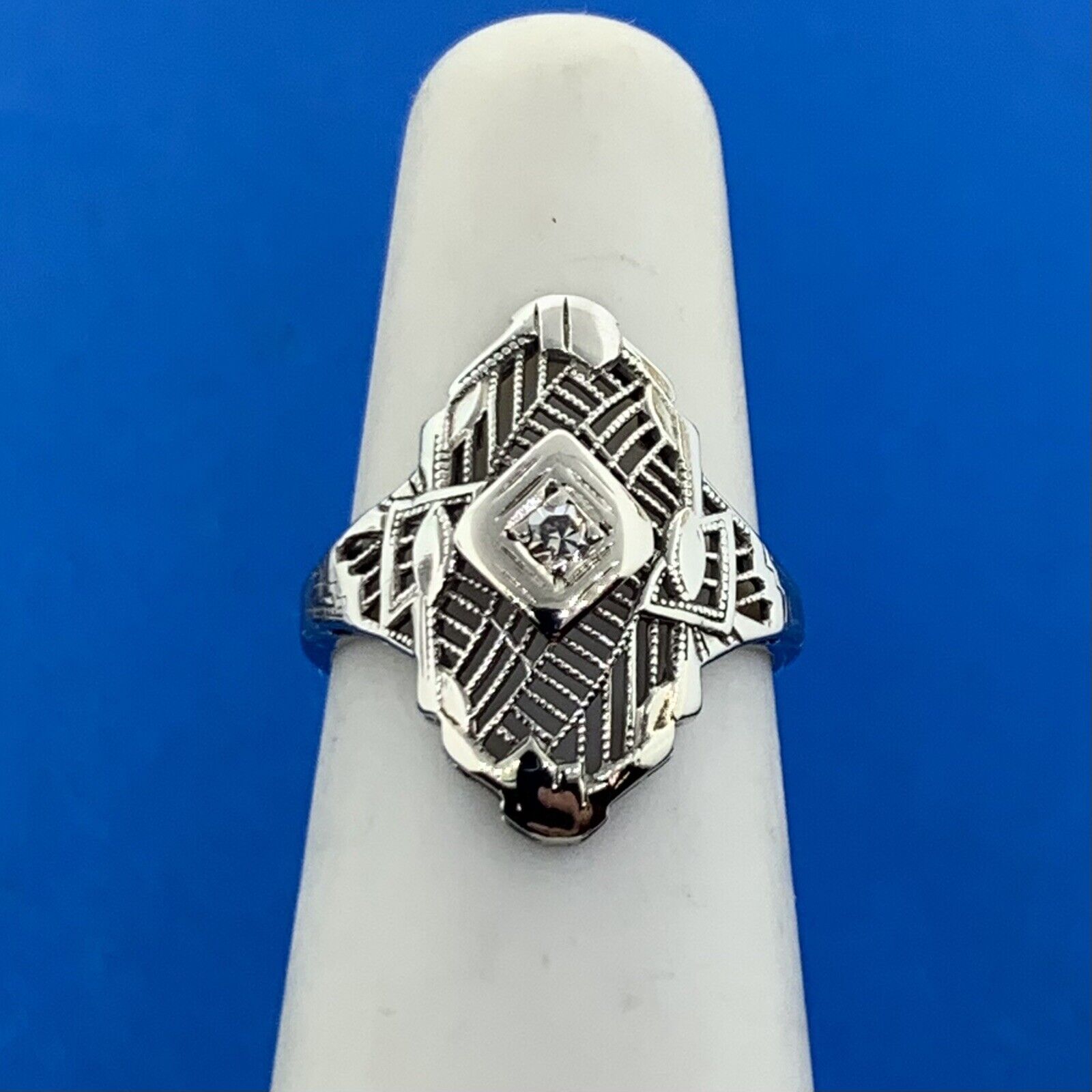 - Vintage Cherie 14K White Gold Diamond Filigree Cocktail Ring