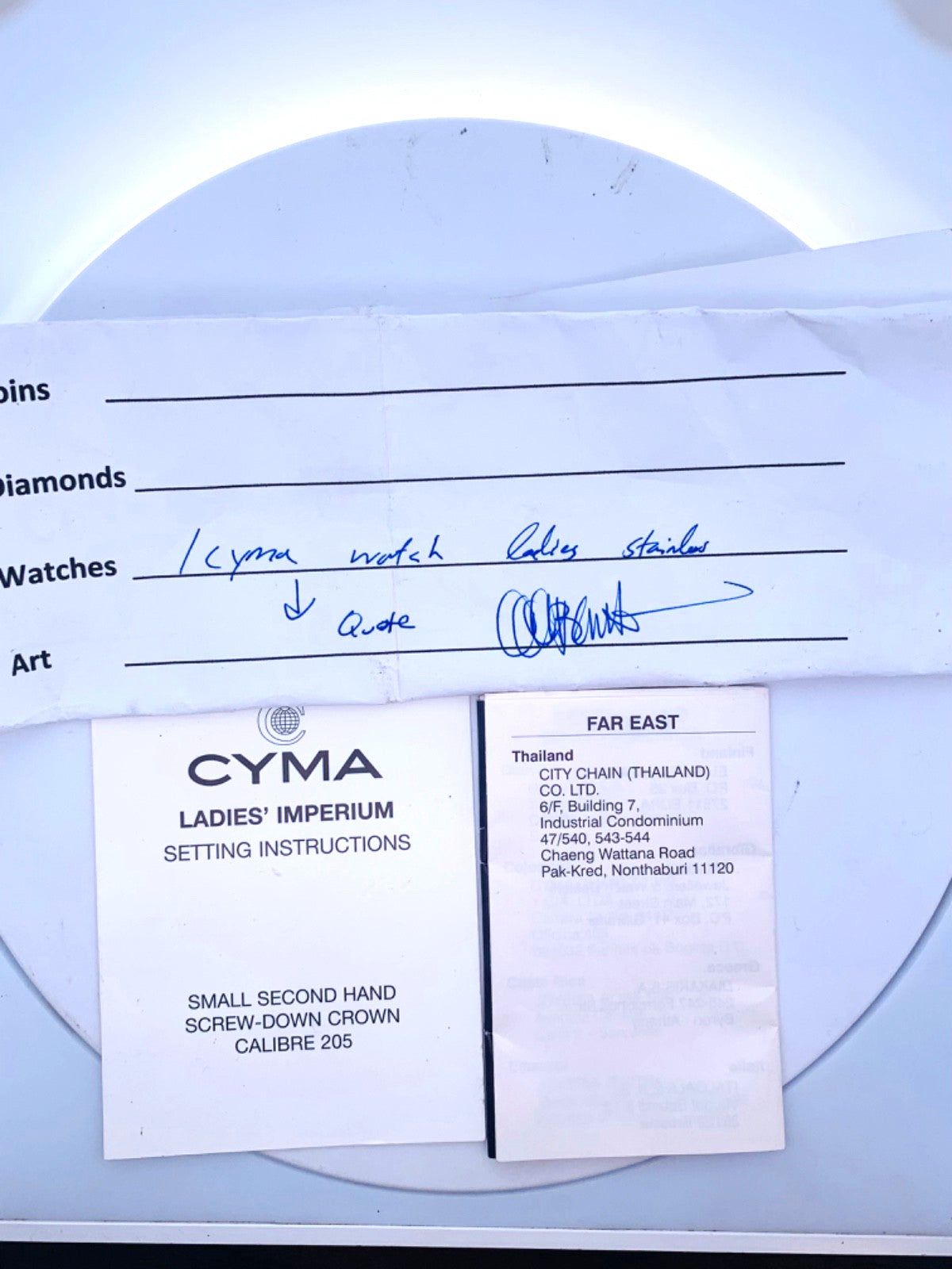 - Vintage Cyma Le Locle Stainless Steel Mother Of Pearl Dial Diamond Accent Watch