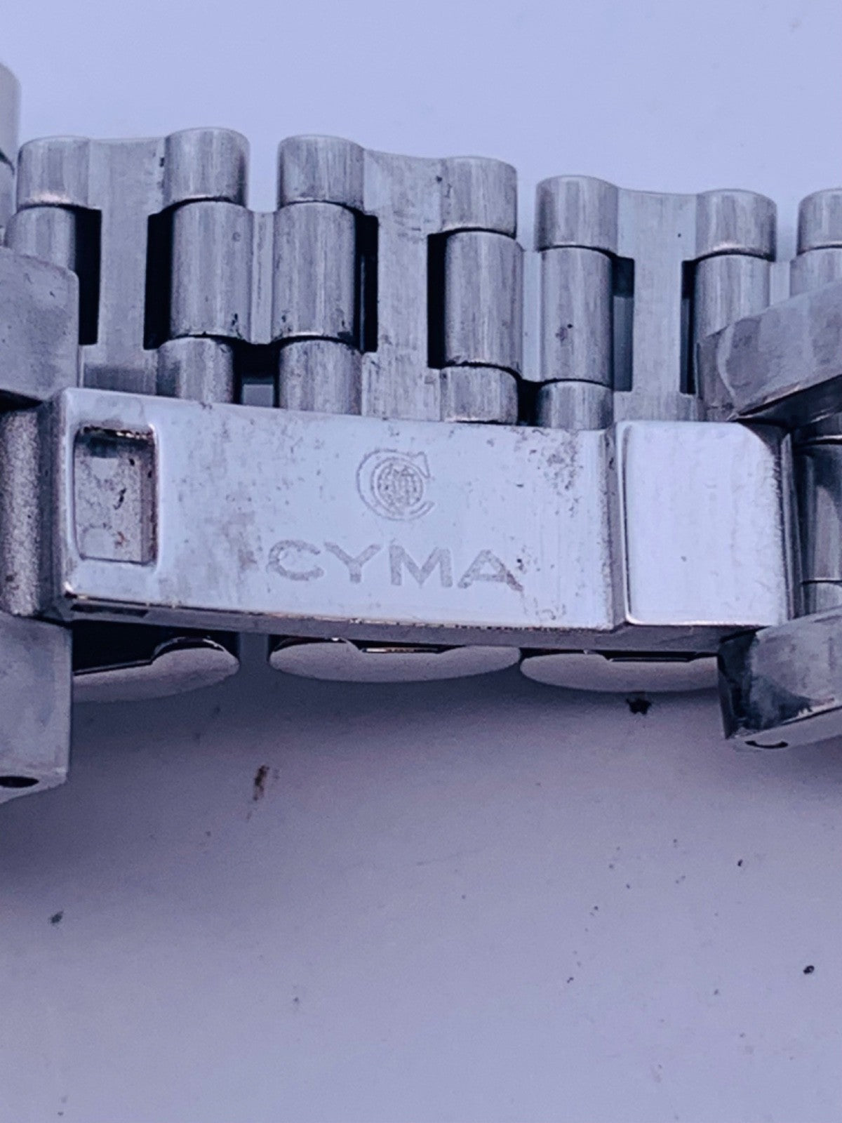 Vintage Cyma Le Locle Stainless Steel Mother Of Pearl Dial Diamond Accent Watch