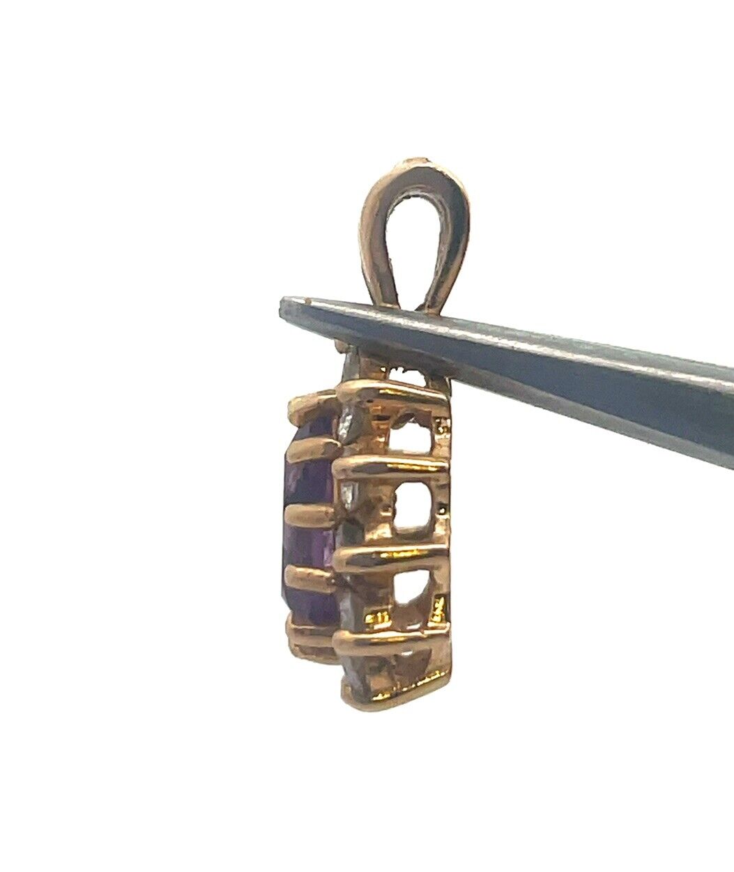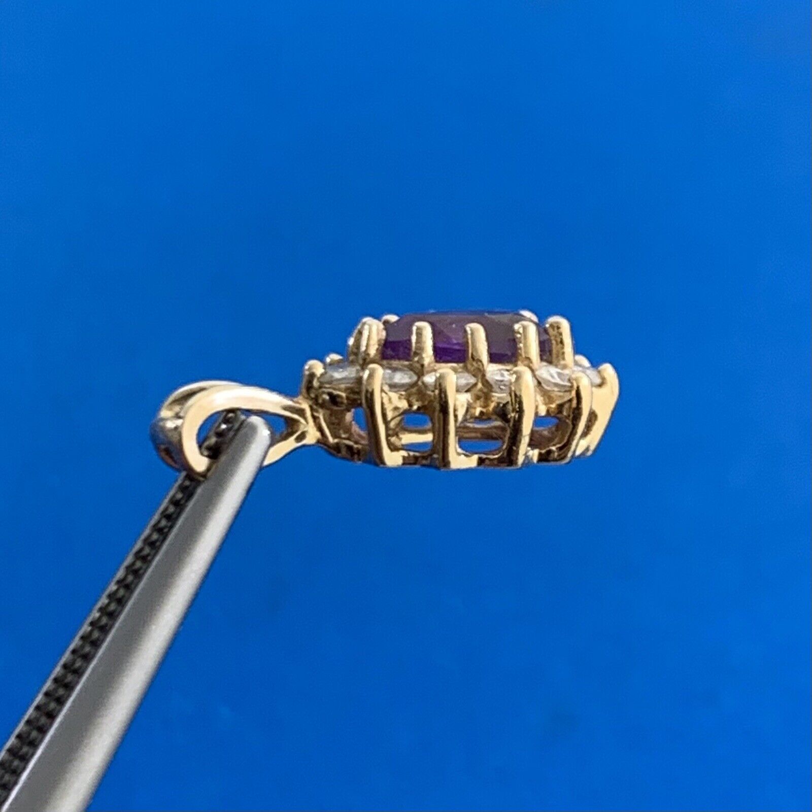 Vintage Designer 14K Yellow Gold Pear Amethyst Diamond Halo Teardrop Pendant