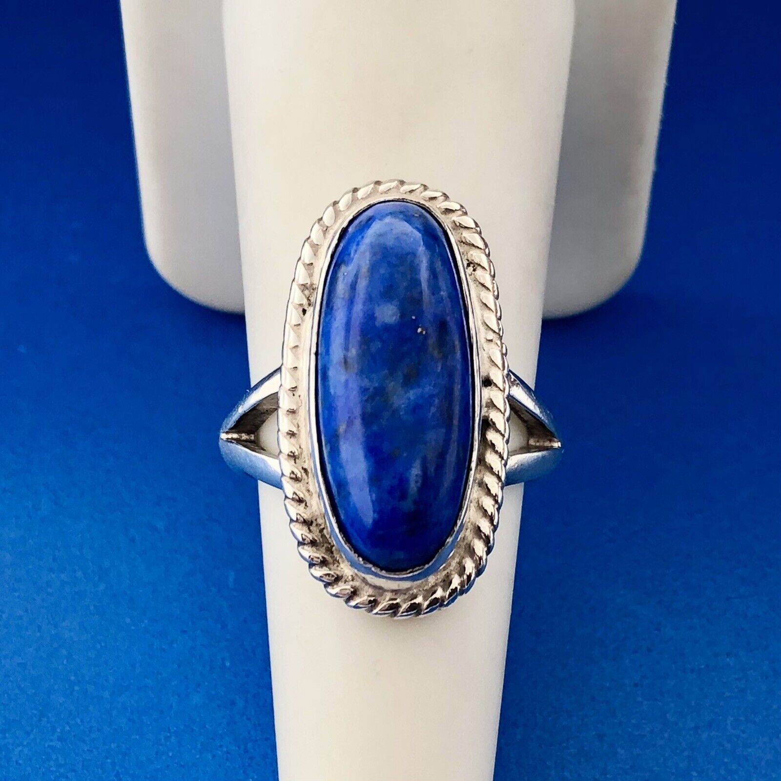 - Vintage Estate Sterling Silver 925 Oval Shaped Lapis Lazuli Finger Ring Size 6