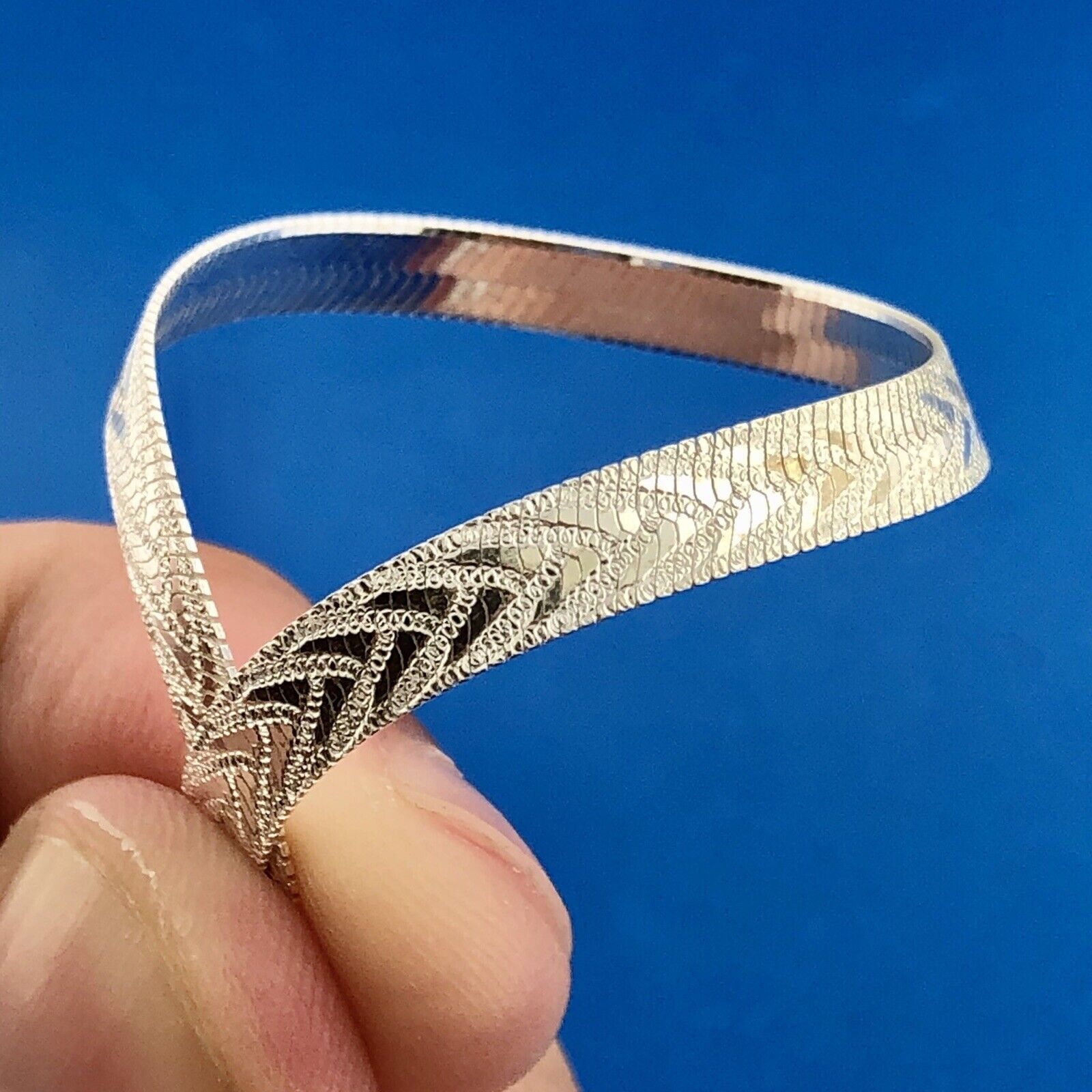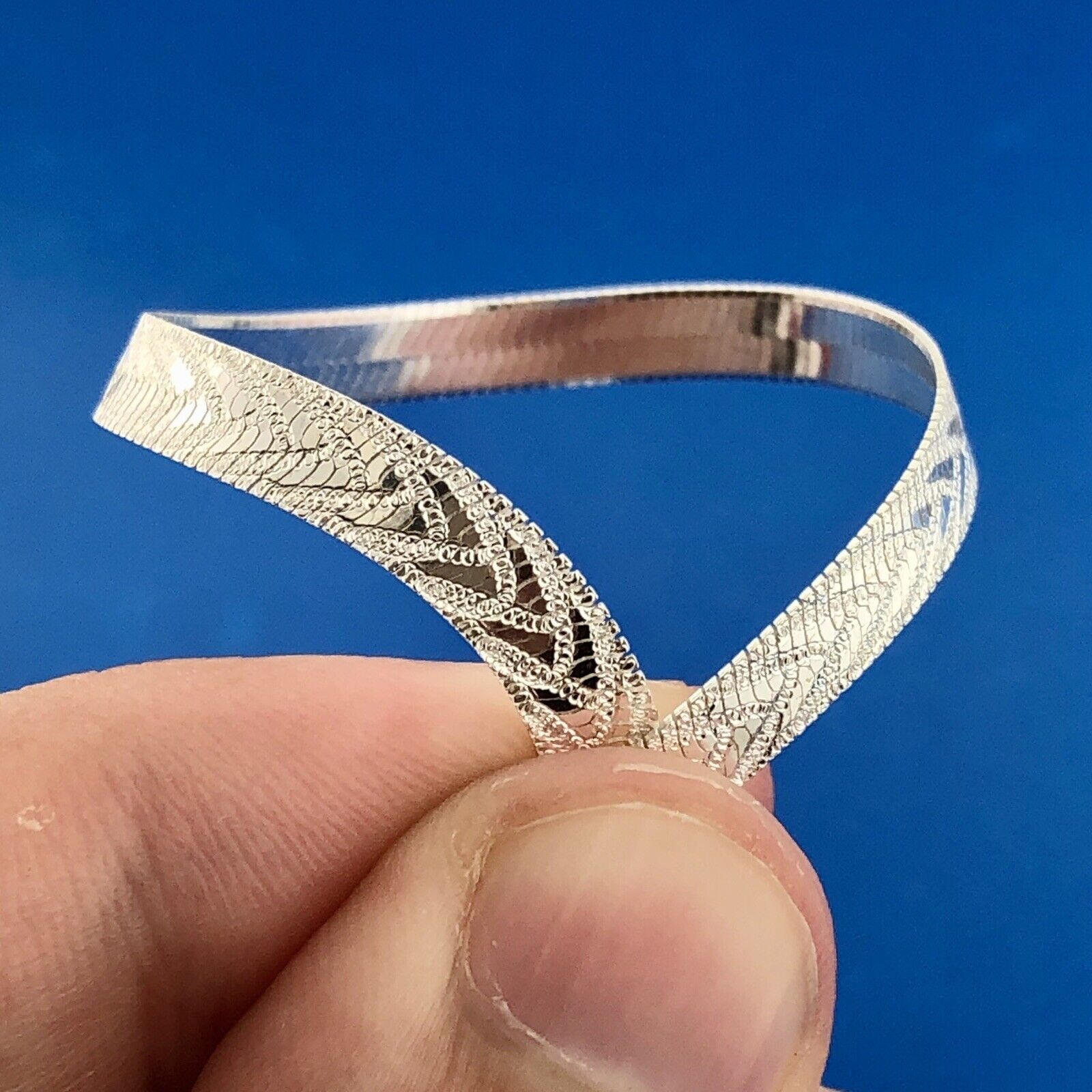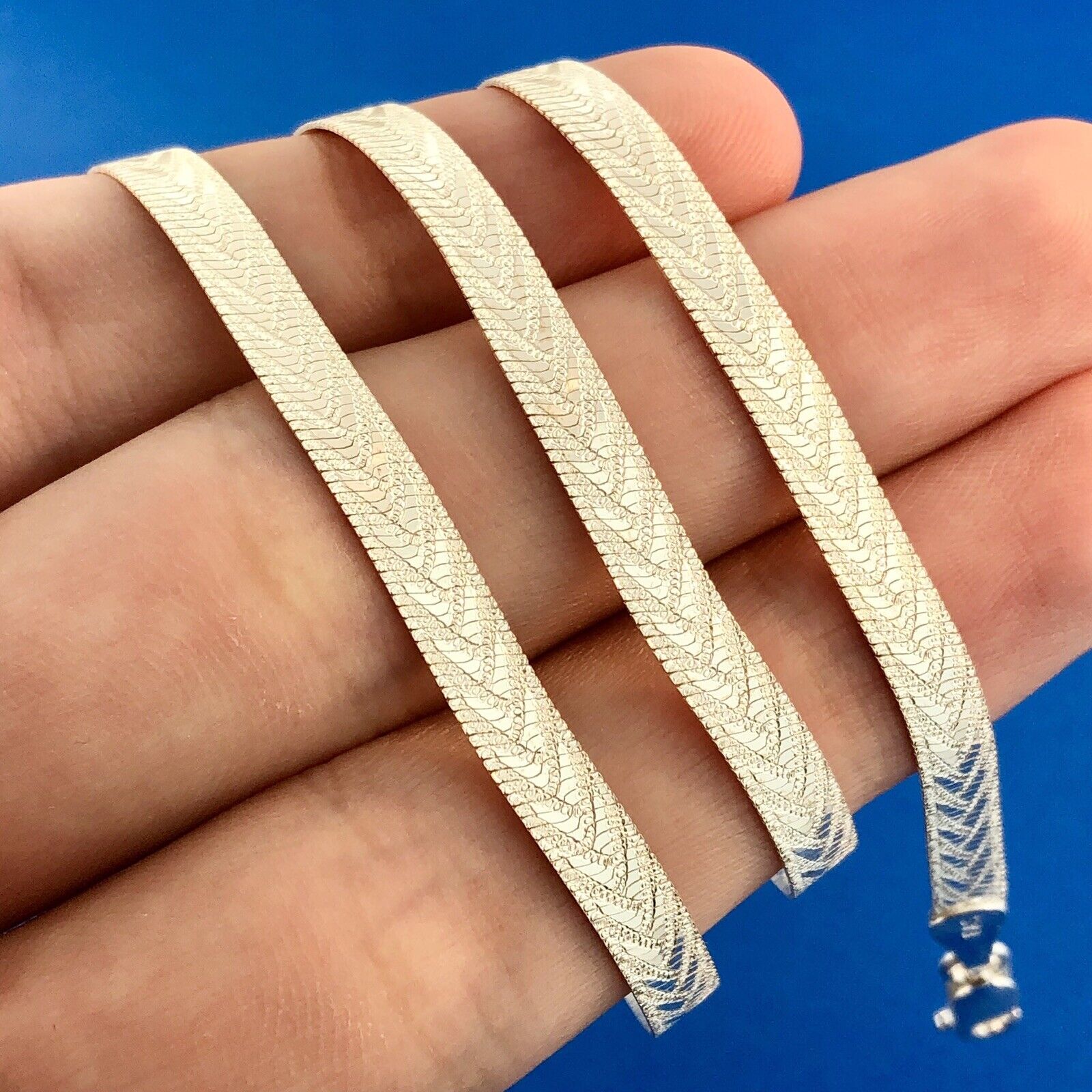- Vintage FAS Italy 925 Sterling Silver Polished Florentine Etched Chain Necklace