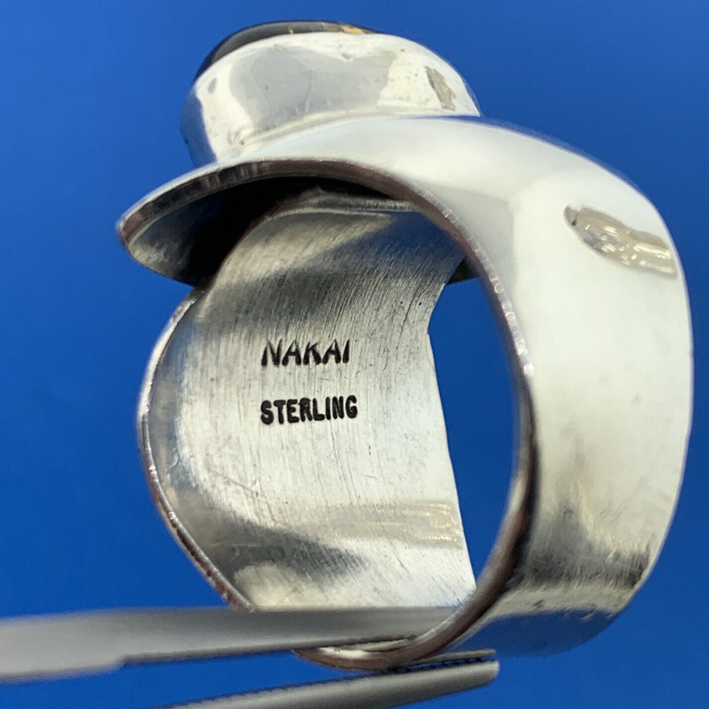 Vintage George Nakai Navajo Sterling Silver 925 Amber Abstract Bypass Ring