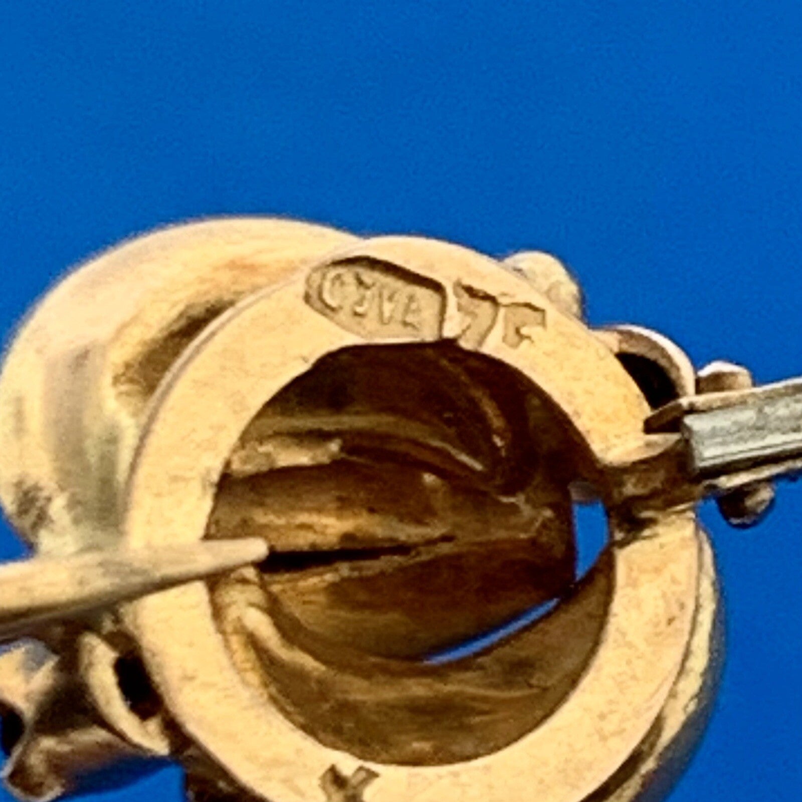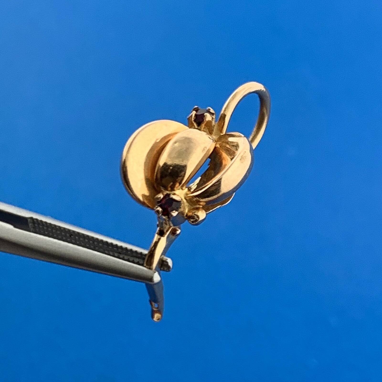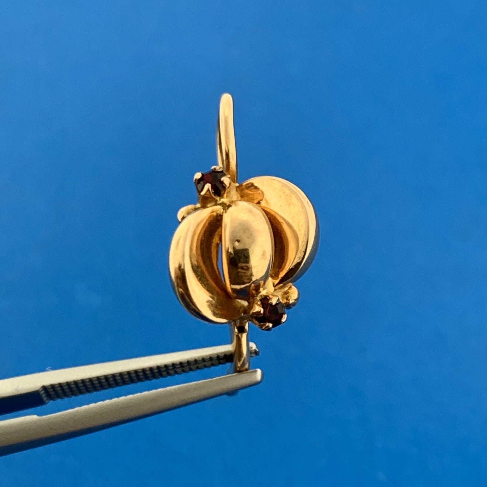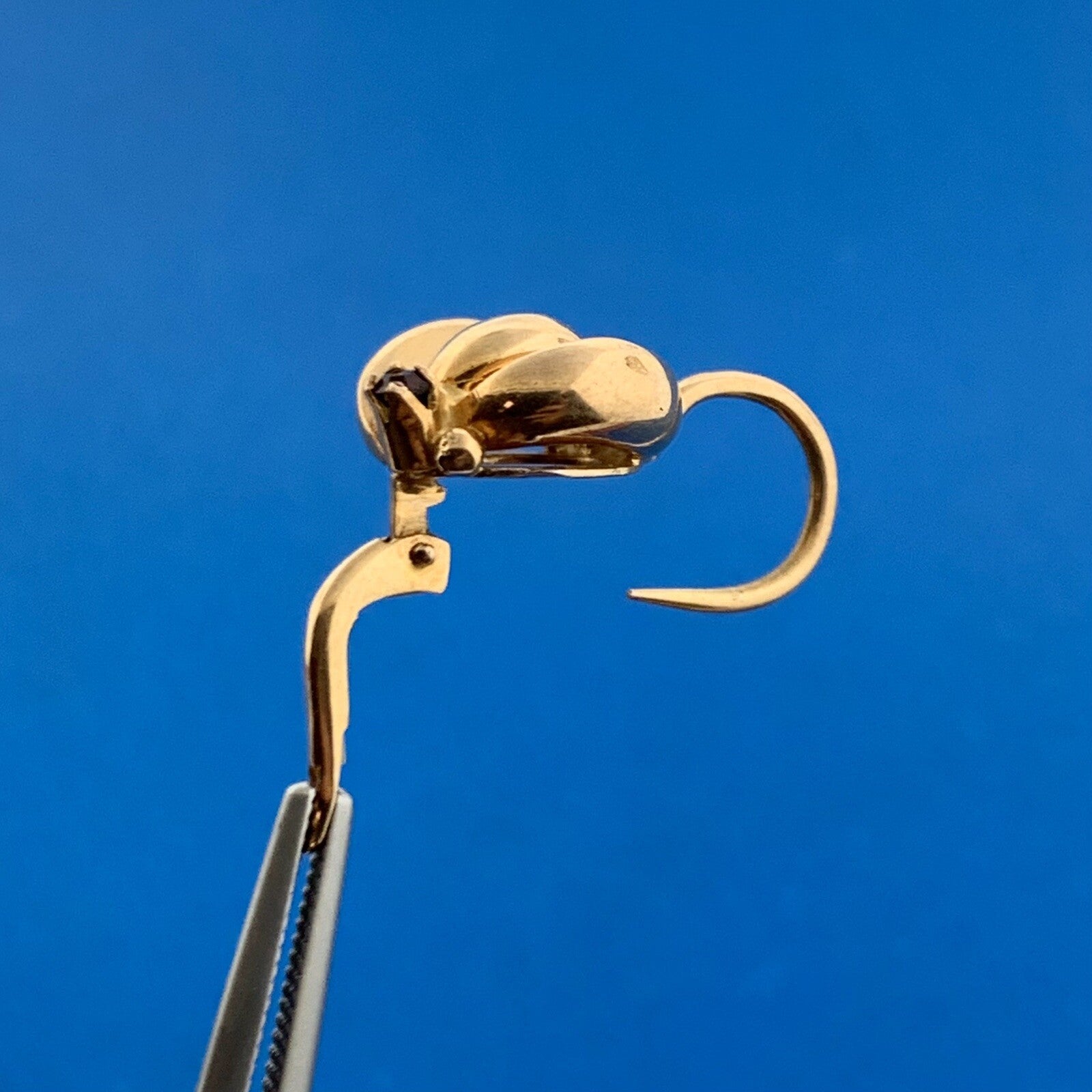 Vintage Hallmarked 18K 750 Yellow Gold Garnet Modernist Leverback Earrings