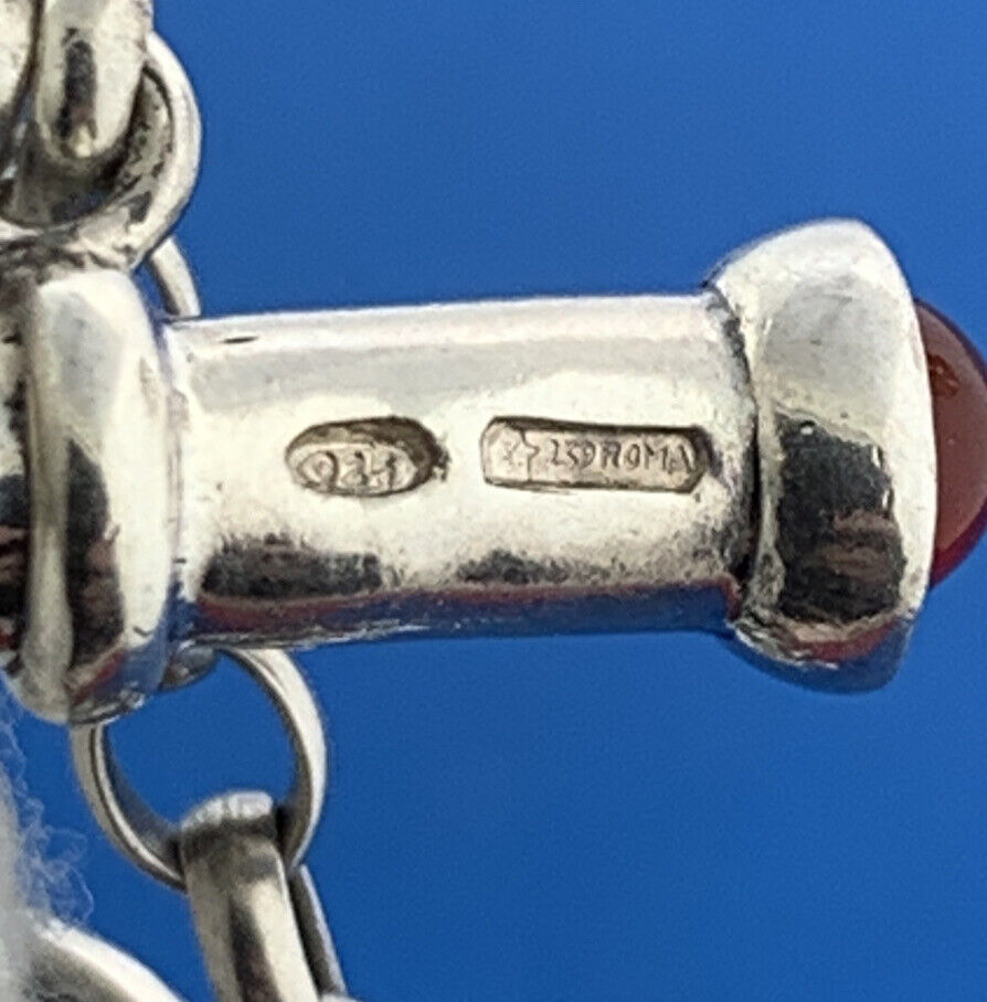 - Vintage Italy Sterling Silver Red Carnelian Green Onyx Floral Toggle Bracelet