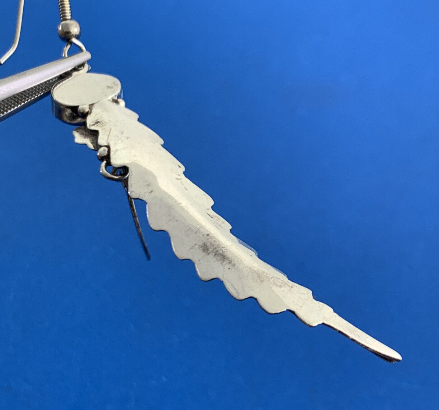 Vintage Native American 925 Sterling Silver Black Onyx Dangle Feather Earrings