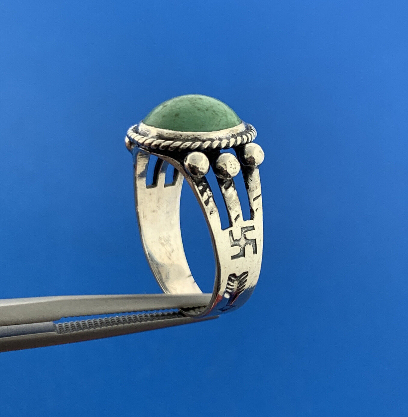 Vintage Native American 925 Sterling Silver Green Turquoise Storyteller Ring