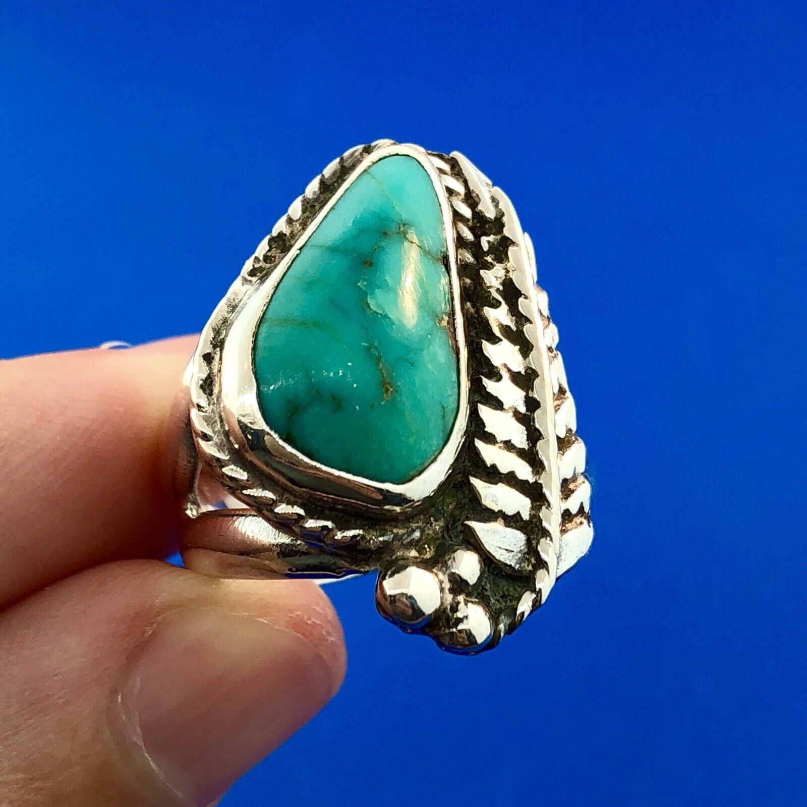 Vintage Native American DB Sterling Silver 925 Turquoise Feather Chunky Ring