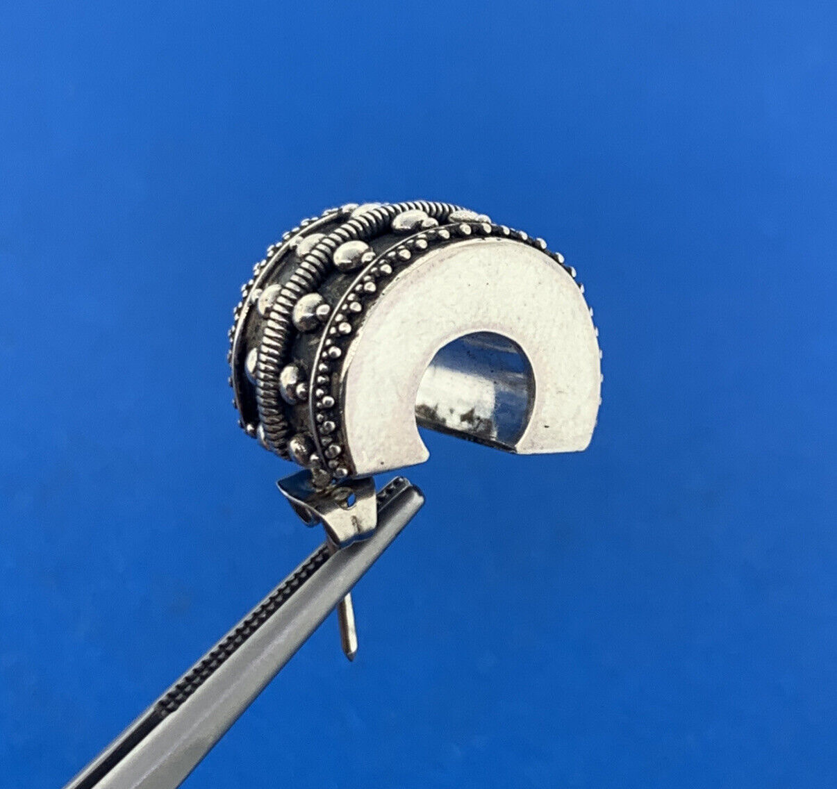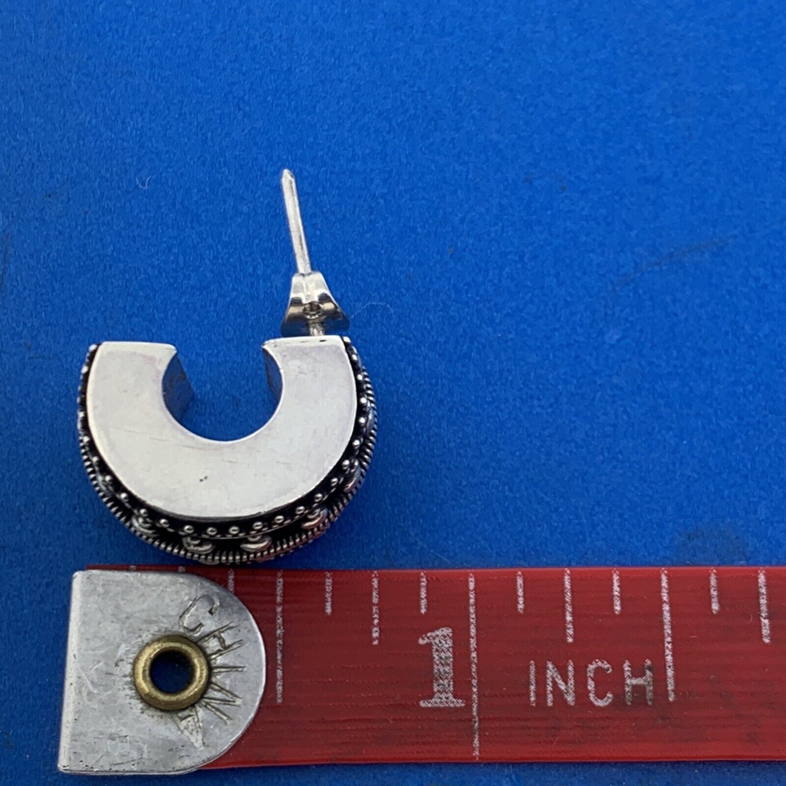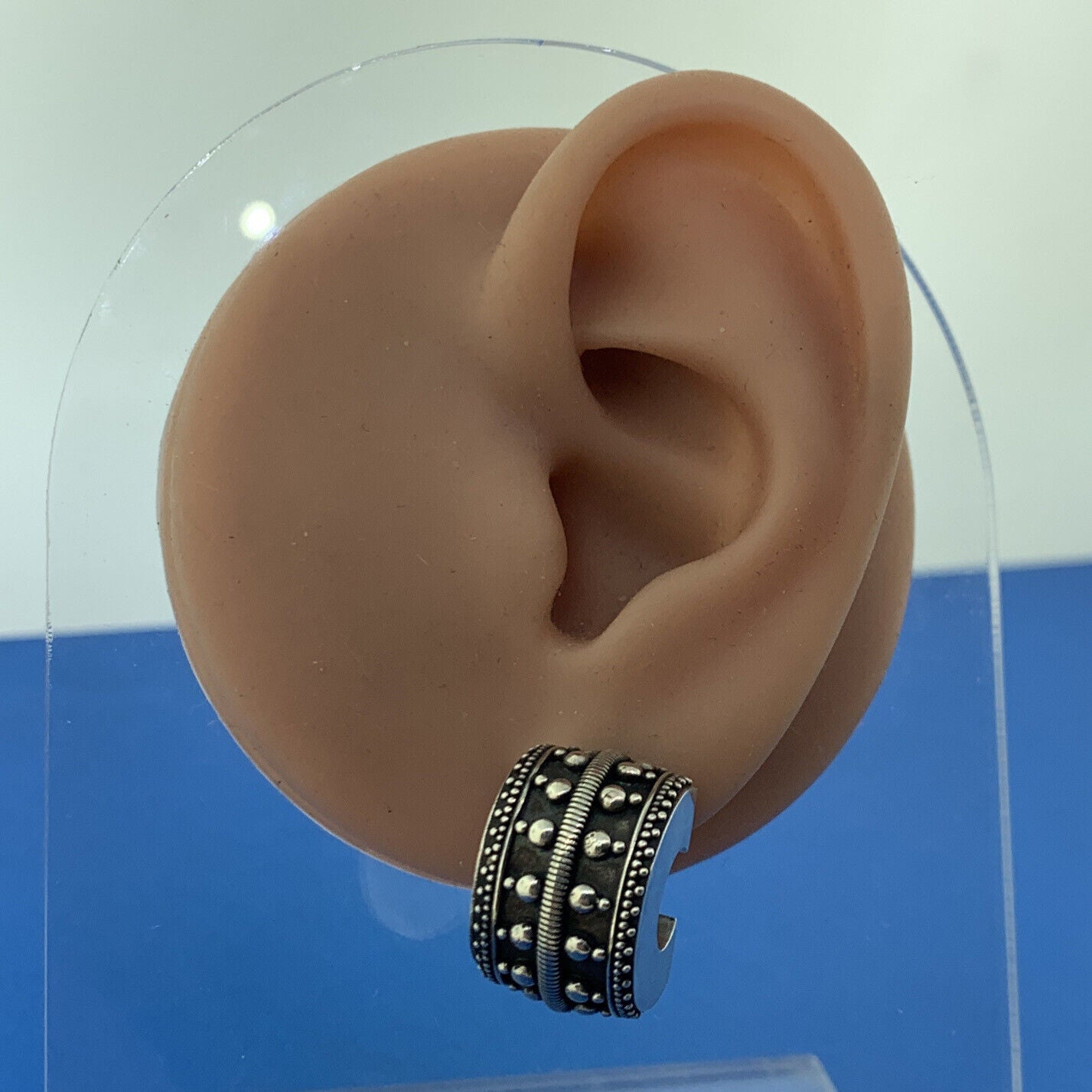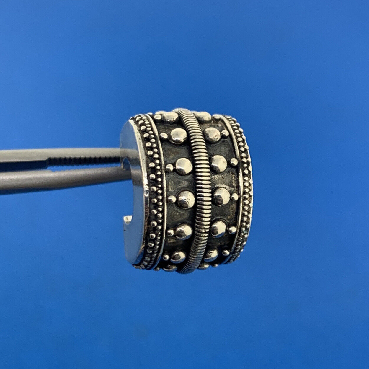 - Vintage Sterling Silver 925 Cable Beaded 3D Wide Half Hoop Statement Earrings