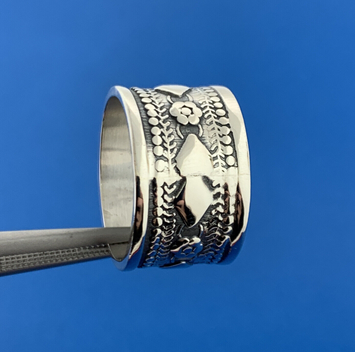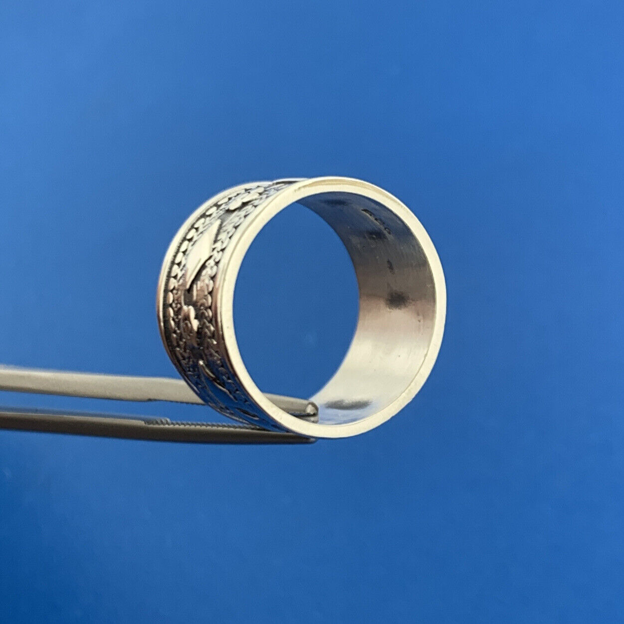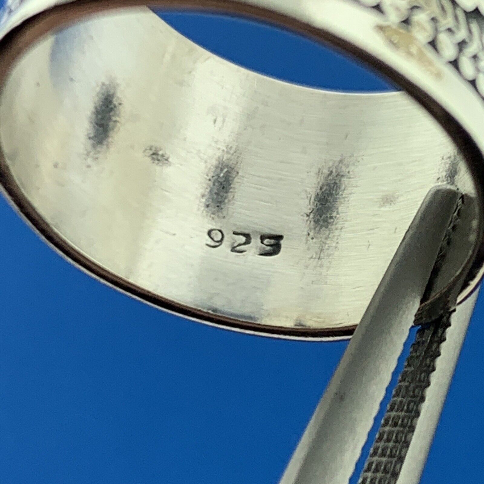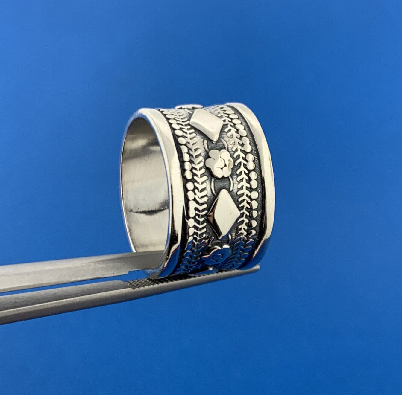 - Vintage Sterling Silver 925 Stamped Flower Diamond Design Statement Band Ring